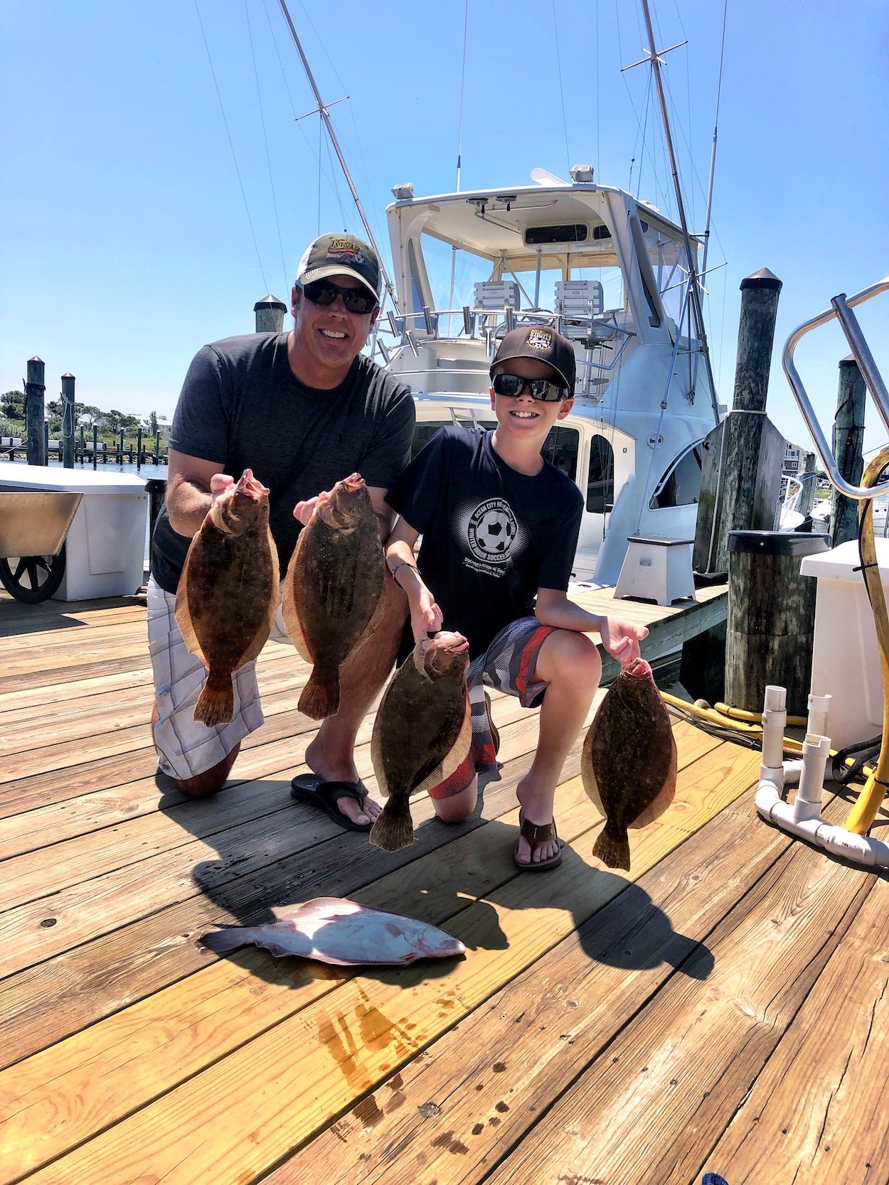 Back in the bay flounder fishing was good again on the high tide. Captain John Prather of Ocean City Guide Service had my buddy Steve Green of the Dispatch and his son Beckett on board today and they crushed it. Steve and Beckett released two shark and put five keeper flounder in the box in just two hours.