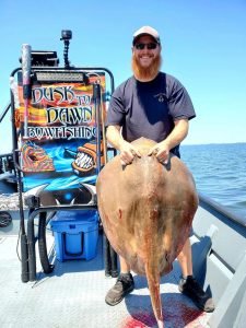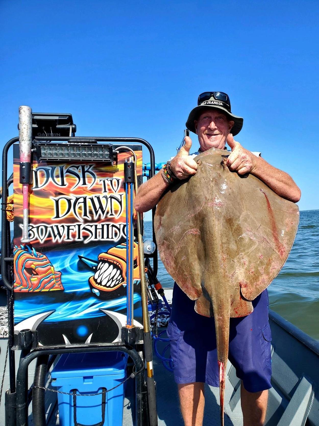 Captain Marc Spagnola of Dusk to Dawn Bowfishing had his way with the cownosed and southern rays today when he put his shooters on some terrific action in the south bay.