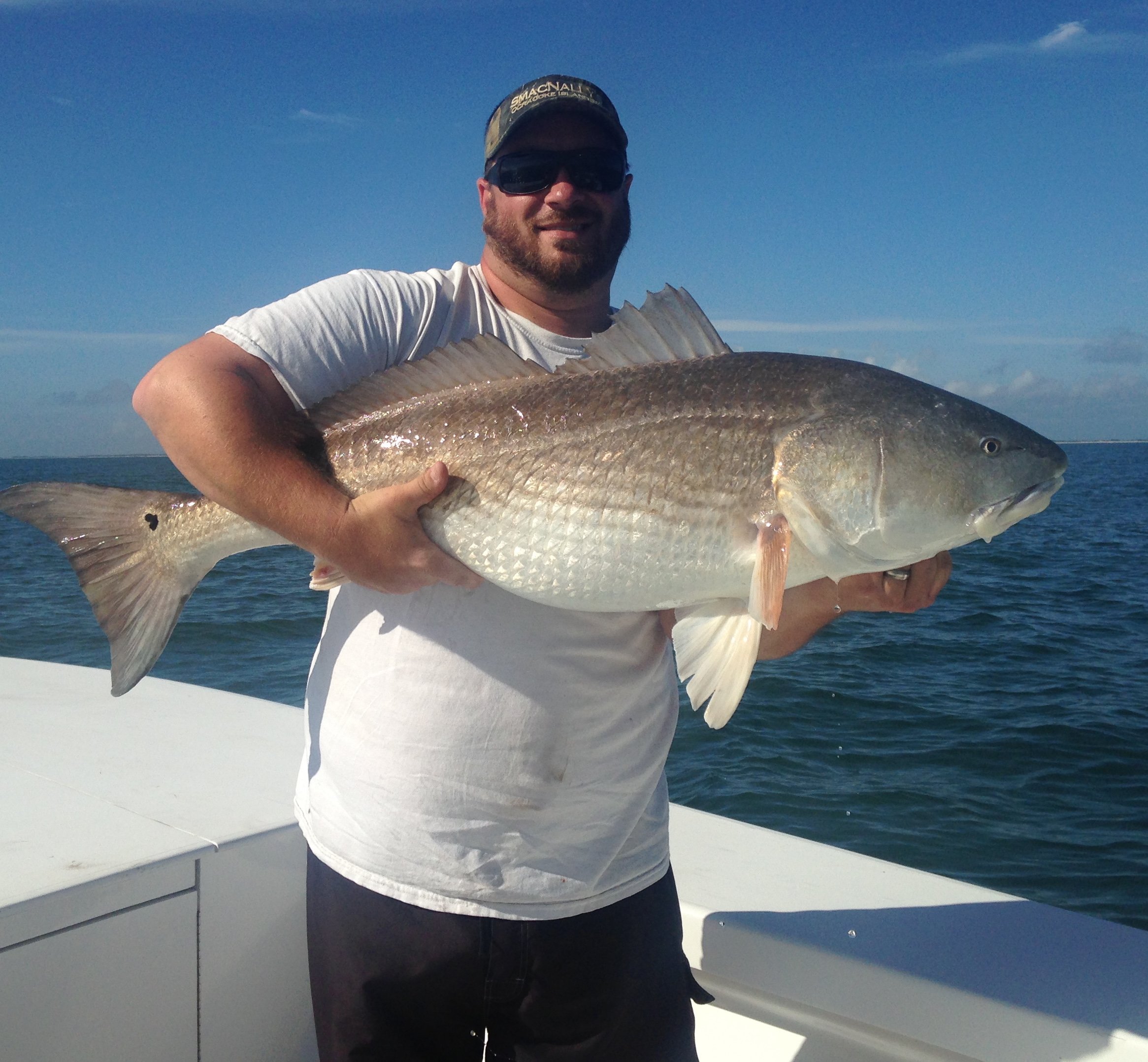 Yesterday Jeremy Hudson and his buddy Robbie fished over ocean structure with cut bunker and caught and released this beautiful 45″ red drum.