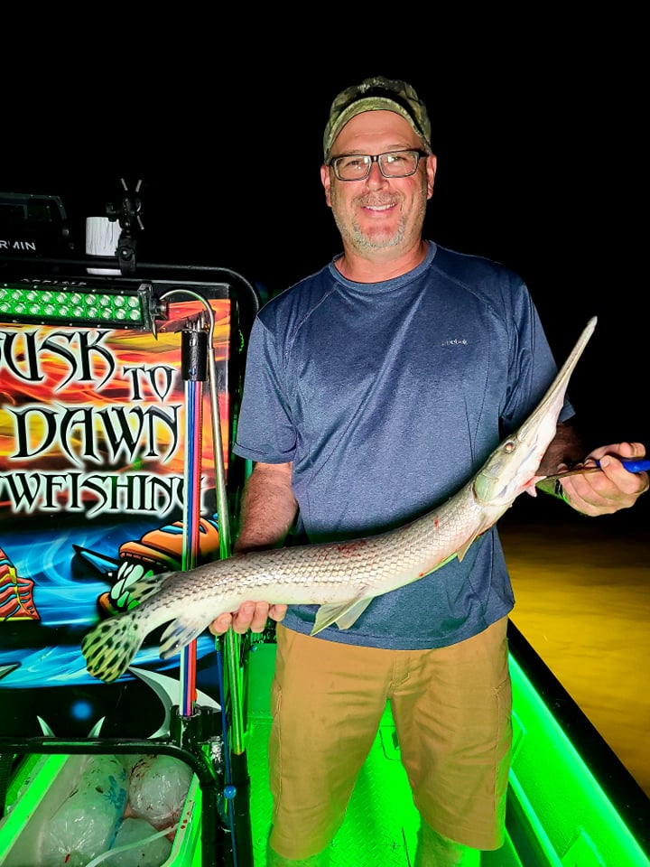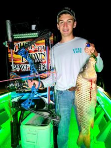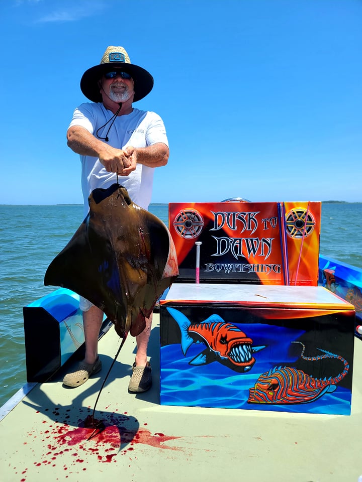Captain Marc Spagnola of Dusk to Dawn Bowfishing doesn’t sleep much this time of year, but that’s because he’s spending so much time showing his shooters a good time both day and night. Captain Marc is putting his folks on lots of opportunities for rays, snakeheads, gar, carp, catfish and hound fish.