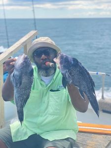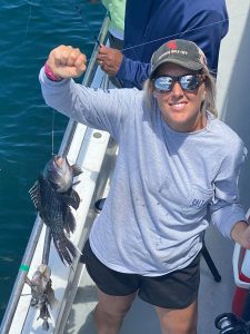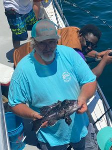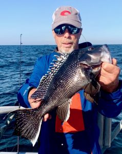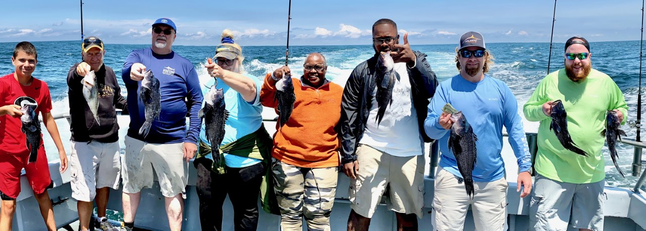 Captain Chris Mizurak of the Angler reported nice conditions and a good bite on today’s trip with sea bass and some flounder ending up in coolers.