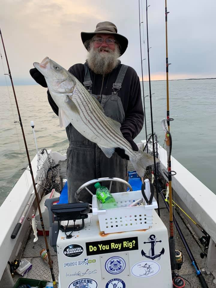 Big Bird Cropper and Shaun “only” caught 8 rockfish today in the OC inlet, but one of them was this beauty of a 34″ fish that was just within the slot and able to be put in the cooler.