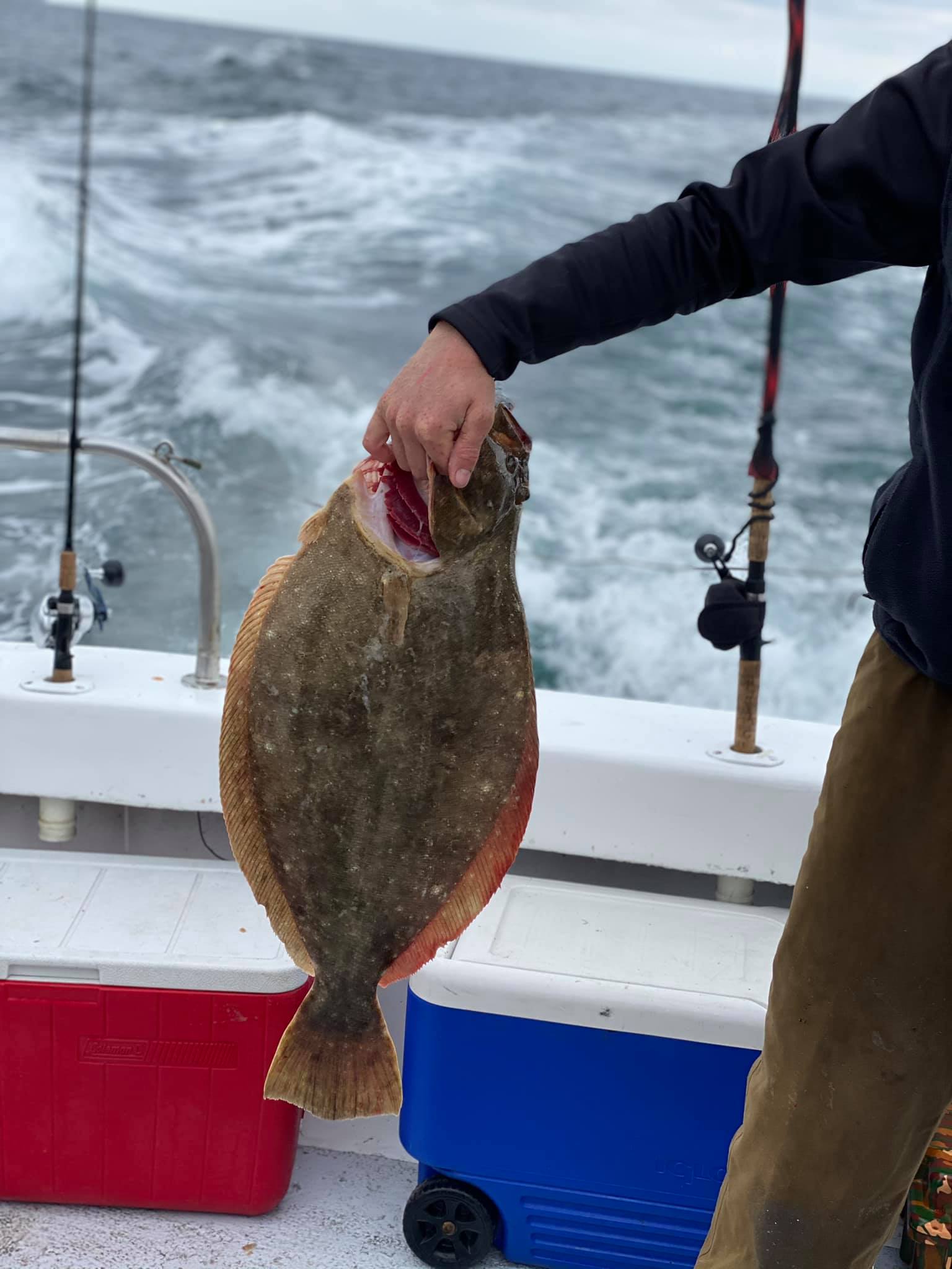 Captain Chris Mizurak of the Angler got out to the ocean and had rain, sleet and snow today, but that was no big deal thanks to the good fishing. The sea bass bite was good, there were a few nice bluefish and there were a couple of December doormat flounder brought over the rail. Dennis had a jumbo 29″, 9 1/4 pounder and Danny had a stud fish at 8 3/4 pounds. Weather is looking good for Thursday and Friday this week!