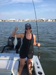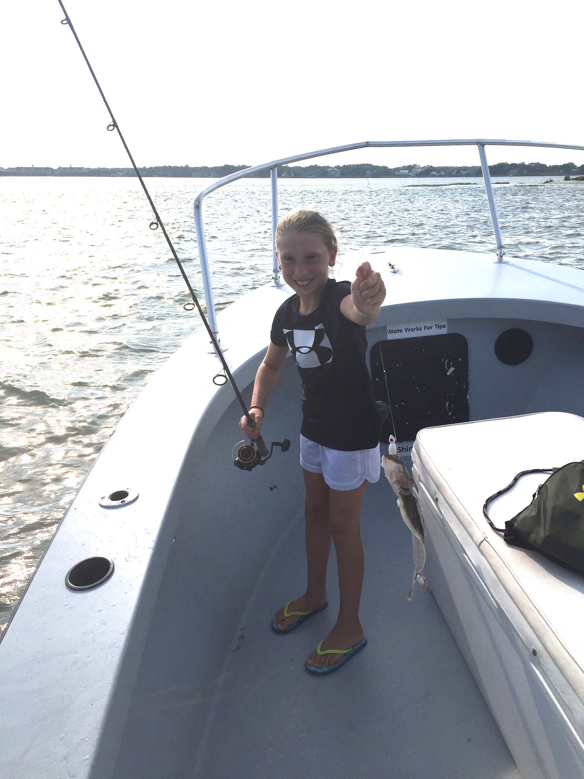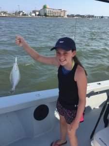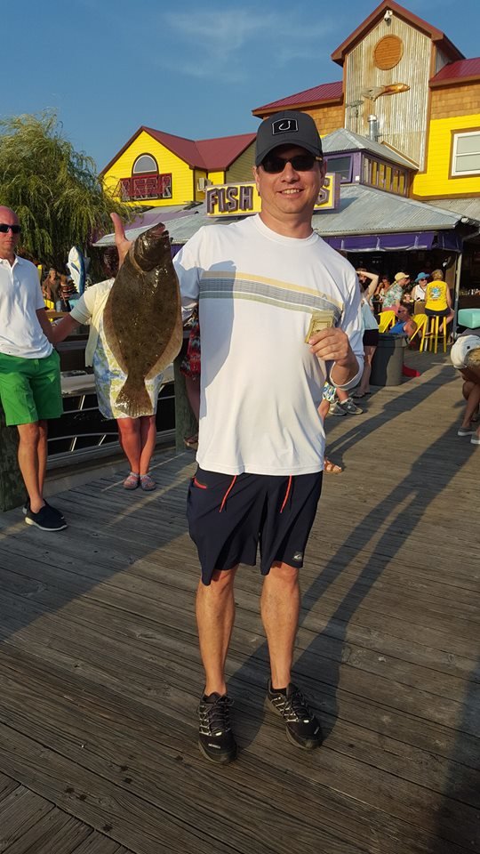 Today Captain John had my fraternity brother Jeff Harris (AKA Droopy) and his girls on board and they had a great time catching flounder. “Droop” got smoked by his girls, but he did finally catch a fish that just missed the 17″ minimum.