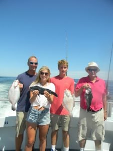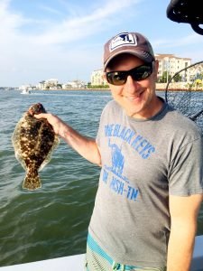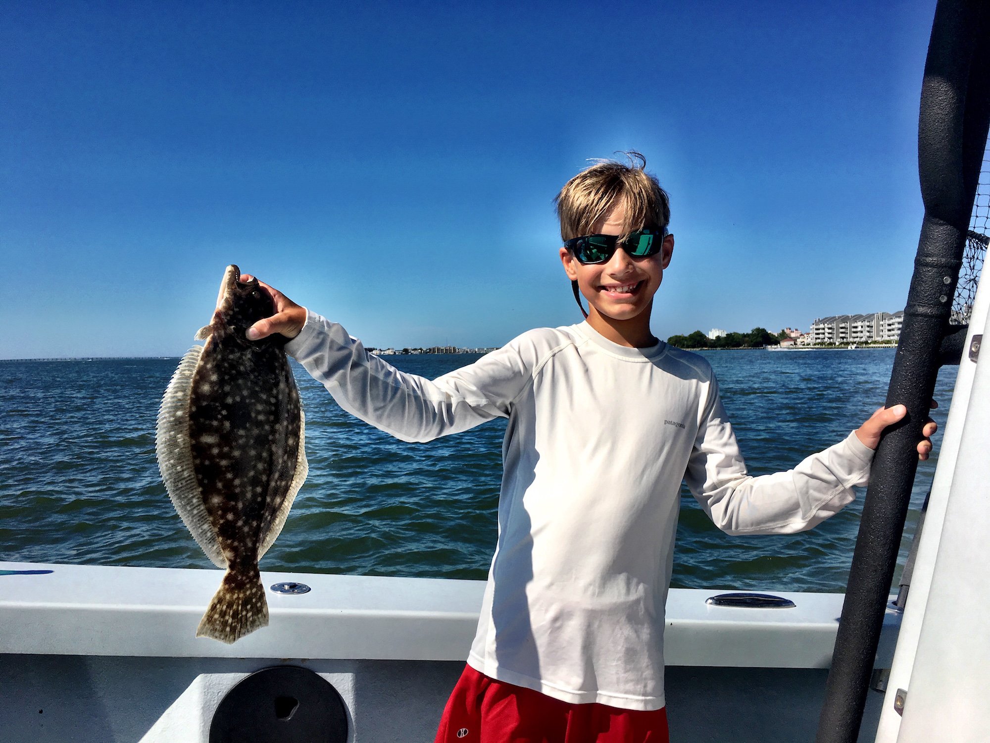 Captain Brad McCabe of Bay Time Charters had Jaime Miller and his boys Jax and Jerry on board today. The boys showed Jaime how it was done and the crew ended the day with four keeper flounder between 17″ and 18″.