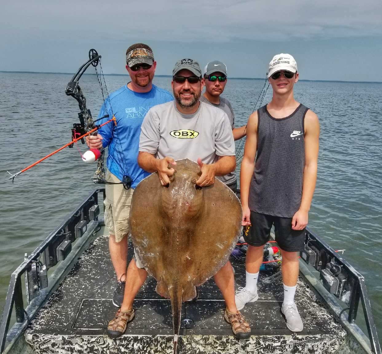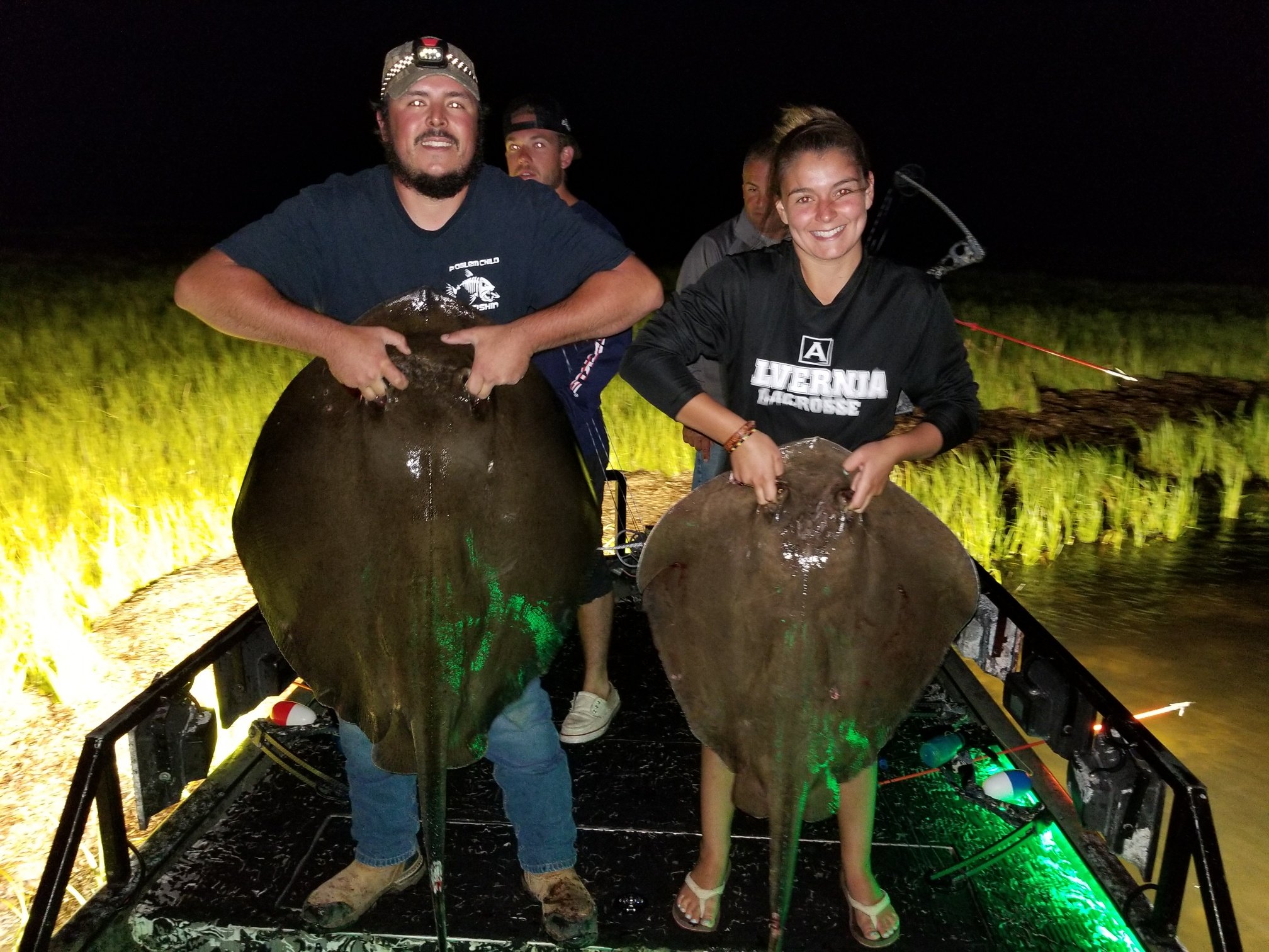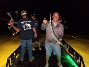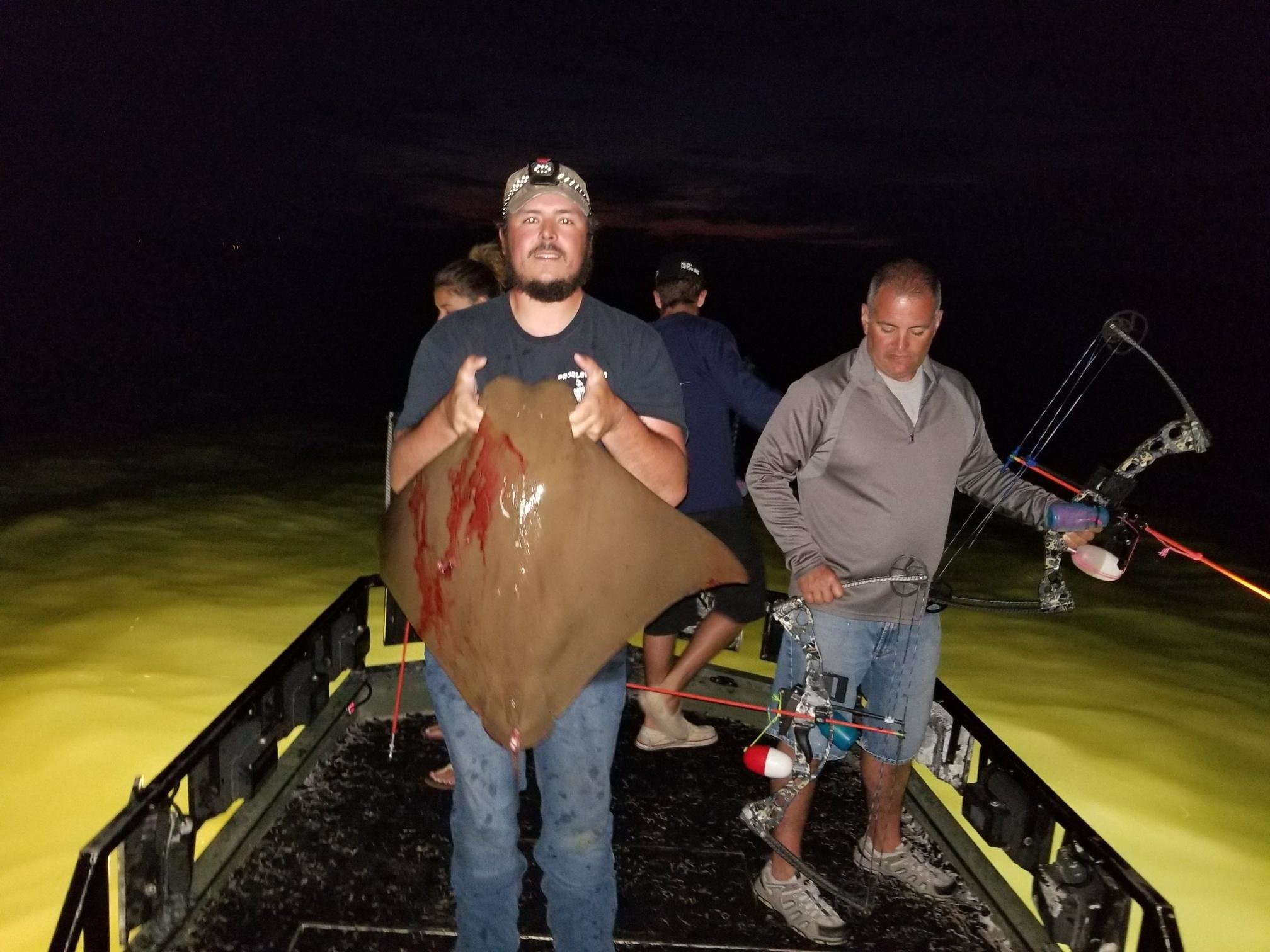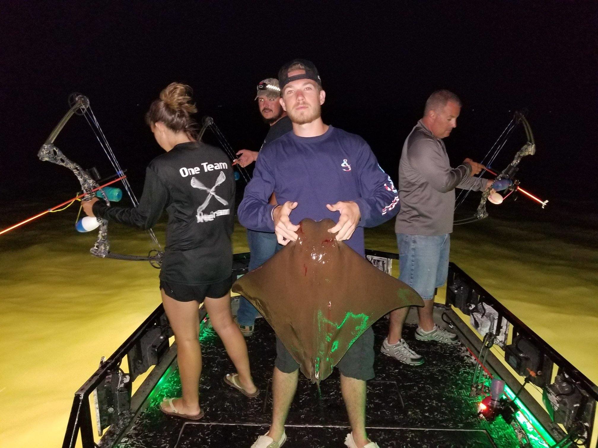 The good bowfishing continues for Captain Marc Spagnola of Dusk to Dawn Bowfishing Captain Marc was on the water last night after the Daily Angle and again today where he put his shooters on some great action for cow nosed and southern rays. Captain Marc even put one sharp shooter on a houndfish.