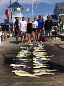 Captain Jim Duncan and family, along with John Fairweather fished with Captain Todd Kurtz and mate Tito on the Restless Lady today and caught 22 mahi, tile fish, sea bass and jacks while fishing the Rockpile.