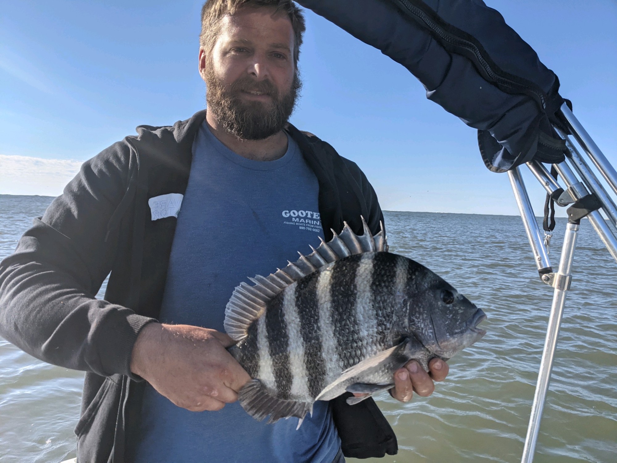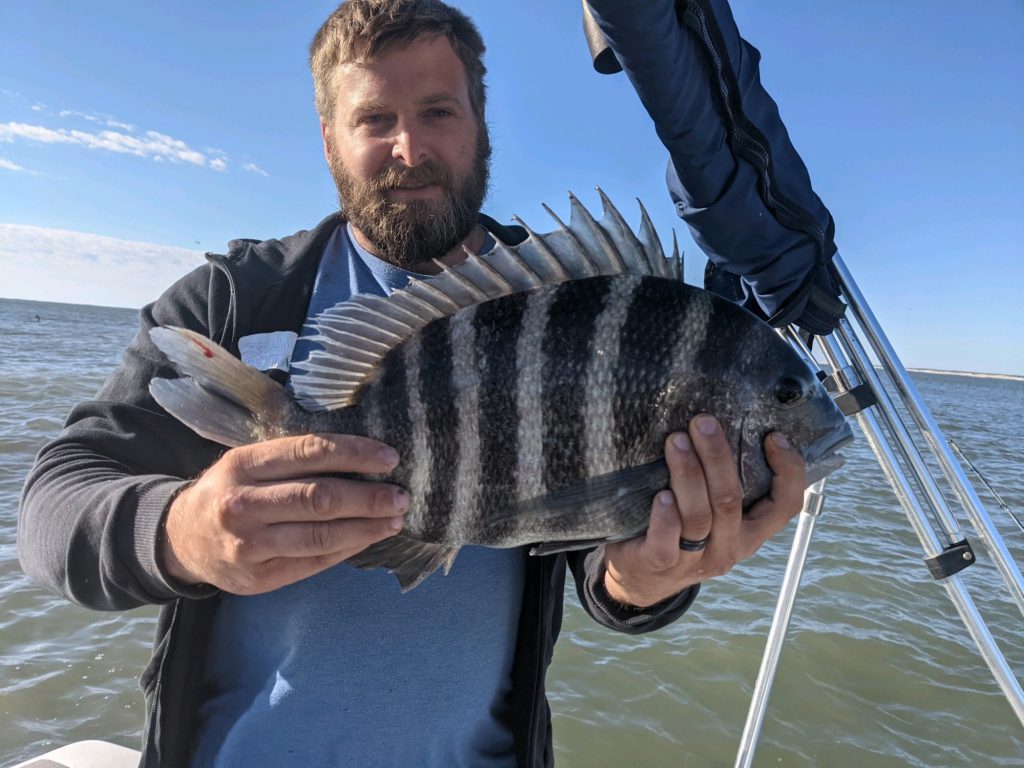 Blake Gunther and Justin Kreiser used the Fish in OC Tog Jigs today with sand fleas and caught a bunch of fish at the south jetty and Martha’s Landing rocks.  They guys caught black drum, rockfish, tautog and two nice sheepshead.