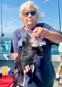 Captain Chris Mizurak of the Angler reported a good bite for sea bass on today’s trip with lots of nice fish around the rail.