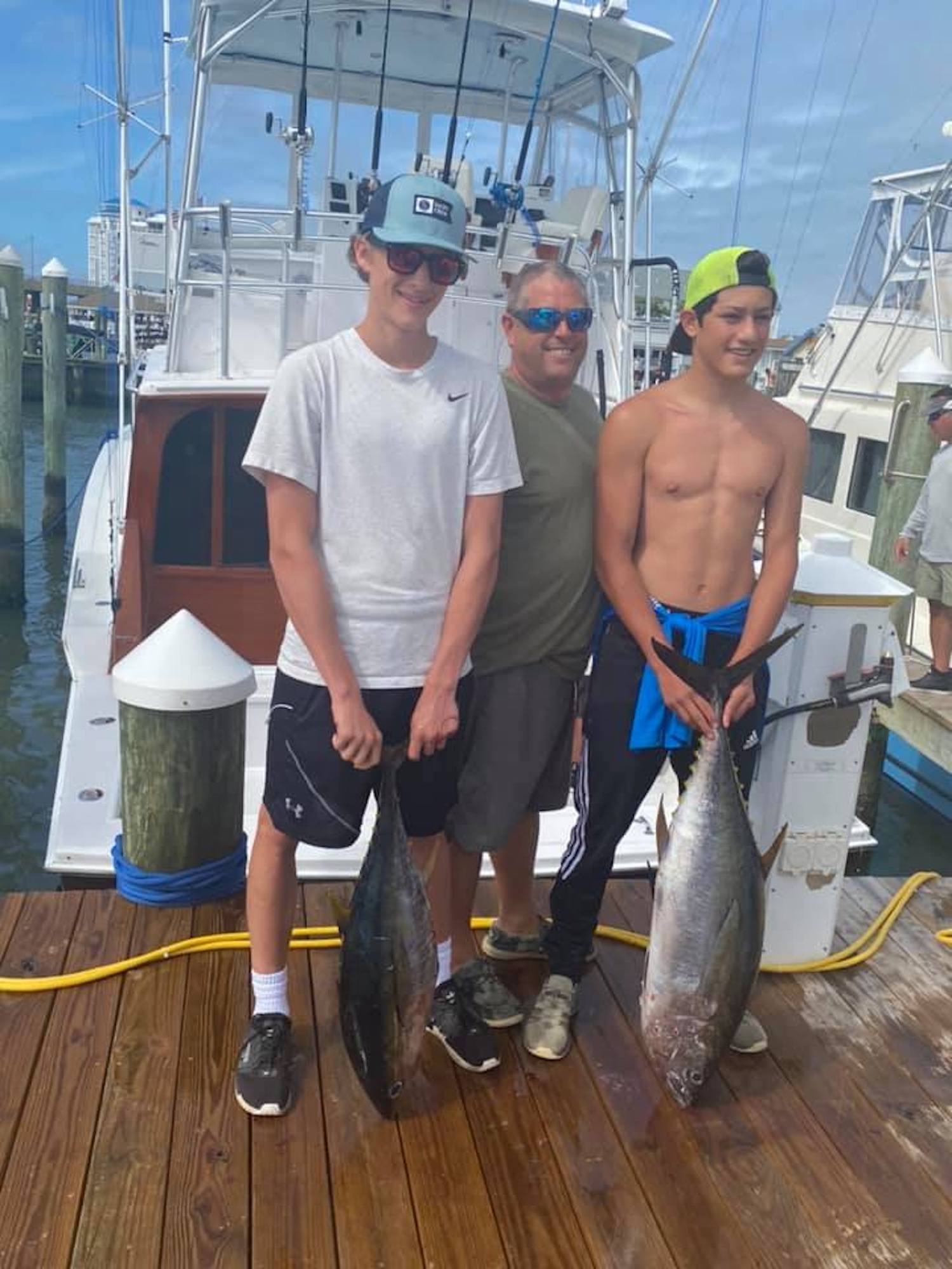 Captain Chris Watkowski and mate Jacob Bialk had a very nice day for their anglers today when the released a white marlin and put three yellowfin tuna in the fish box.