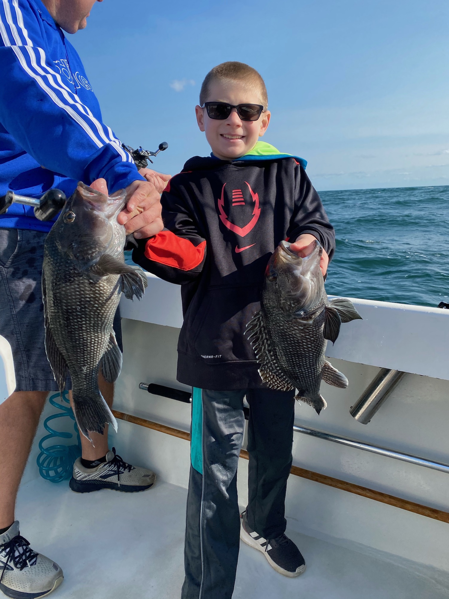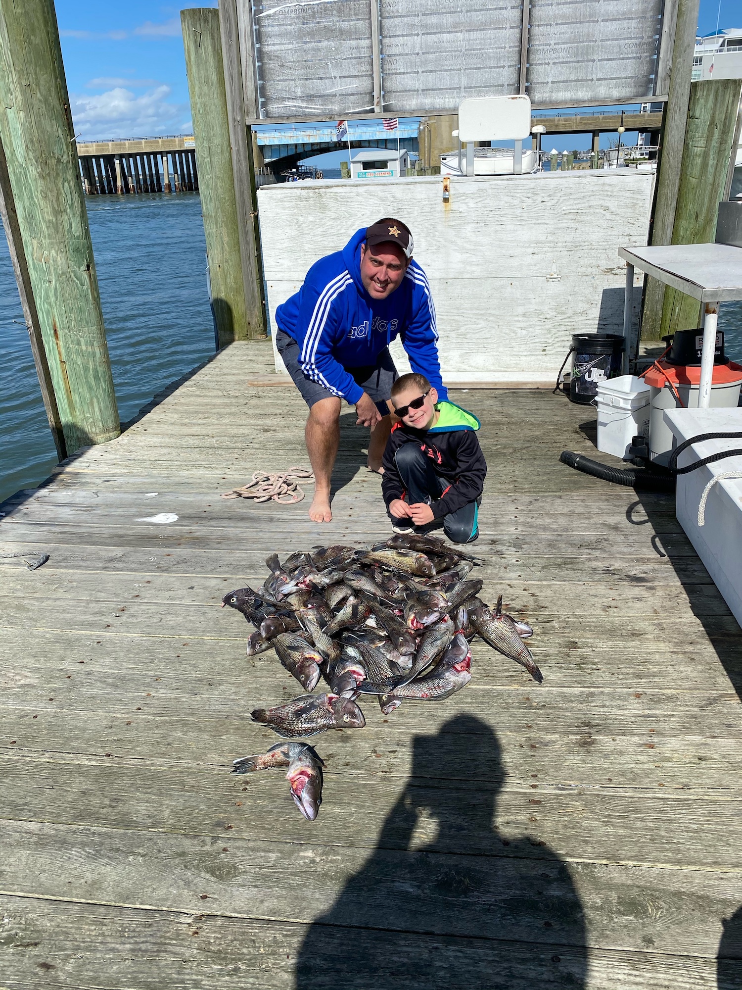 Captain Chase Eberle of Chasin’ Tides Charters braved today’s sea conditions today as well and put his father and son crew on a pile of sea bass.