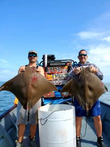 Captain Marc Spagnola used his super bowfishing prowess today to put his anglers on good shooting for cow nosed and southern rays despite the dirty water conditions.
