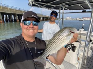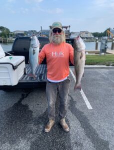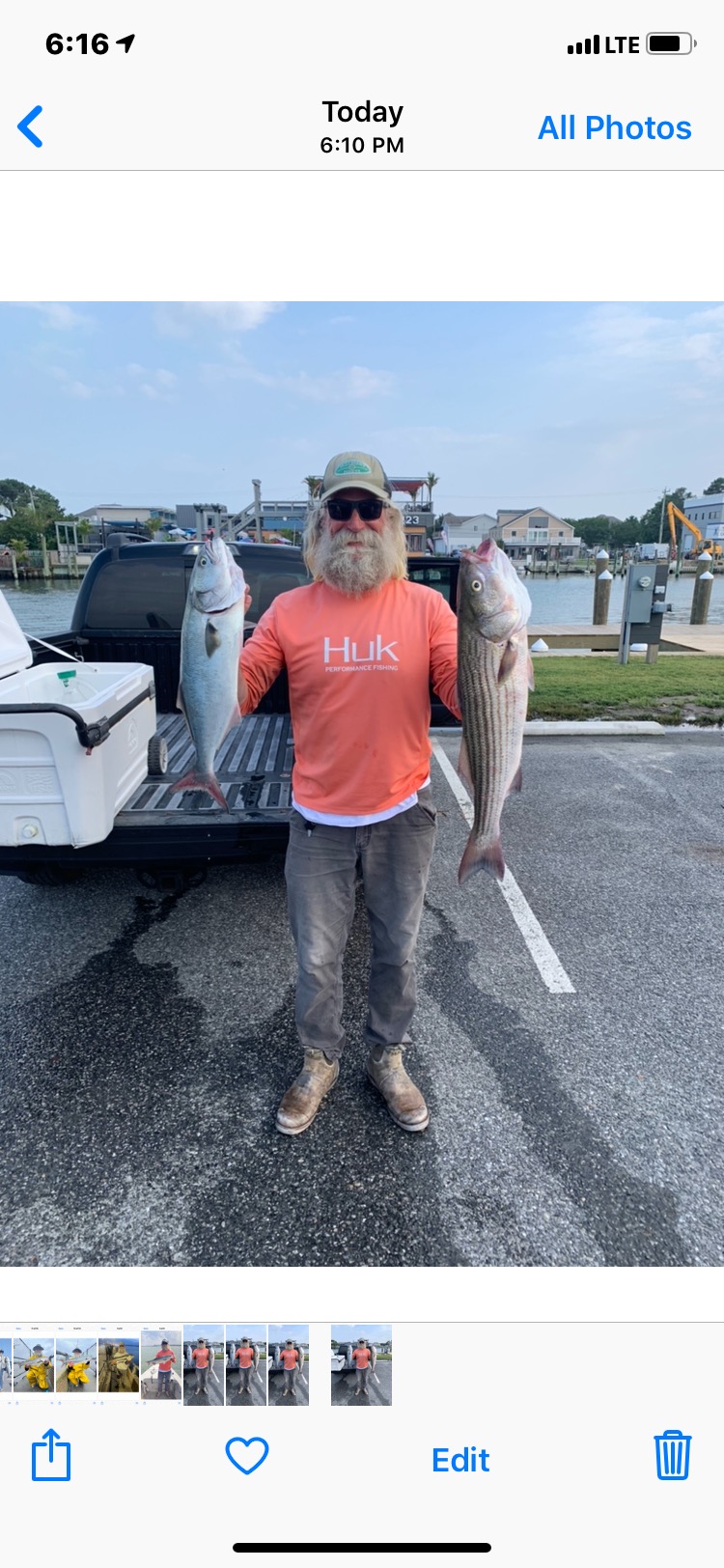 We were fishing right next to Big Bird Cropper and Shaun Flaherty who released a bunch of small rockfish and when we left Shaun caught a nice bluefish and a 29″ keeper rockfish.