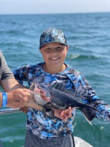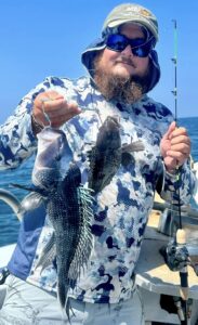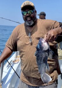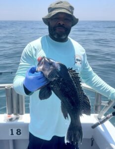 Lamont Hilbert fished his boat the Sea Bum over some ocean structure and had a great day with sea bass and flounder up to 22″.