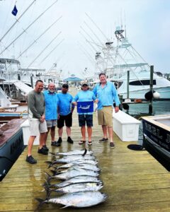 Yesterday the crew of the Boss Hogg with Captain Alex Beane had a nice day of offshore trolling. Captain Beane put his crew on a white marlin release and a pile of yellowfin tuna.