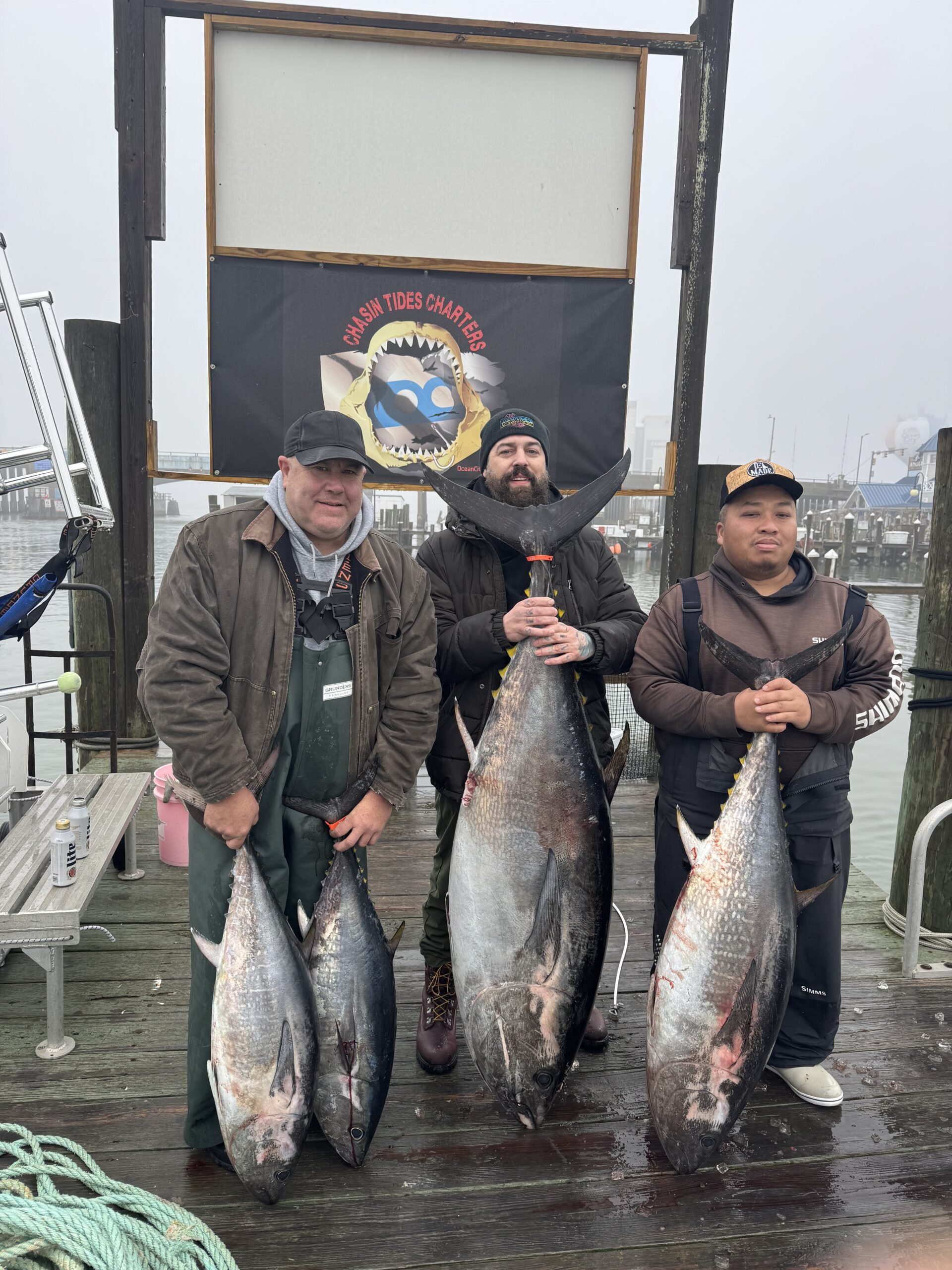 Captain Chase Eberle of Chasin’ Tides Charters had some tuna anglers on board again today and he put them on another limit of fish with three “under” and one “over” bluefin tuna. The largest measured out at 69″.