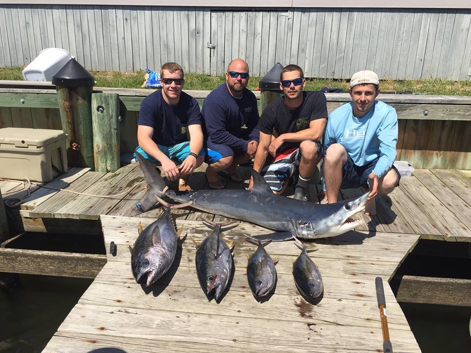 Captain Austin Ensor put his crew on some terrific action that included releasing 5 makos and 2 blue sharks, killing this 105 pounder, and going 7 for 9 bites with the yellowfin with 3 throwbacks for good measure.