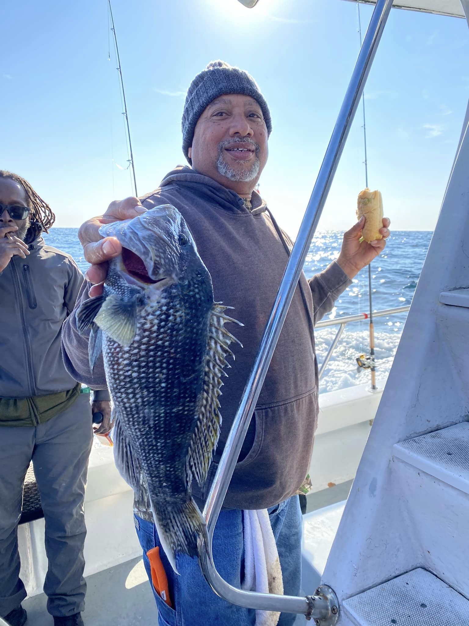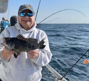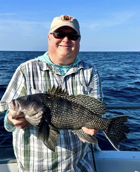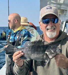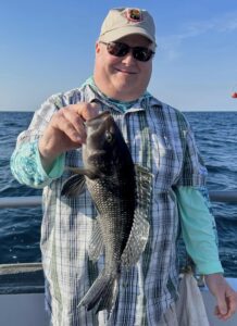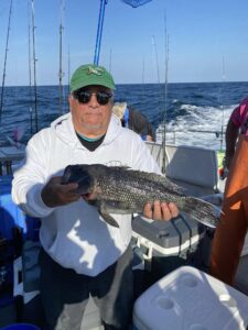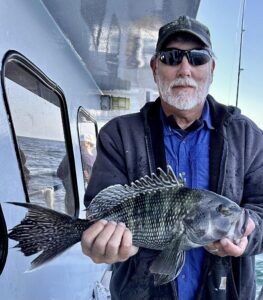 Captain Monty Hawkins of the Morning Star had to deal with the ocean first thing this morning, but by this afternoon it was another boat limit of sea bass.
