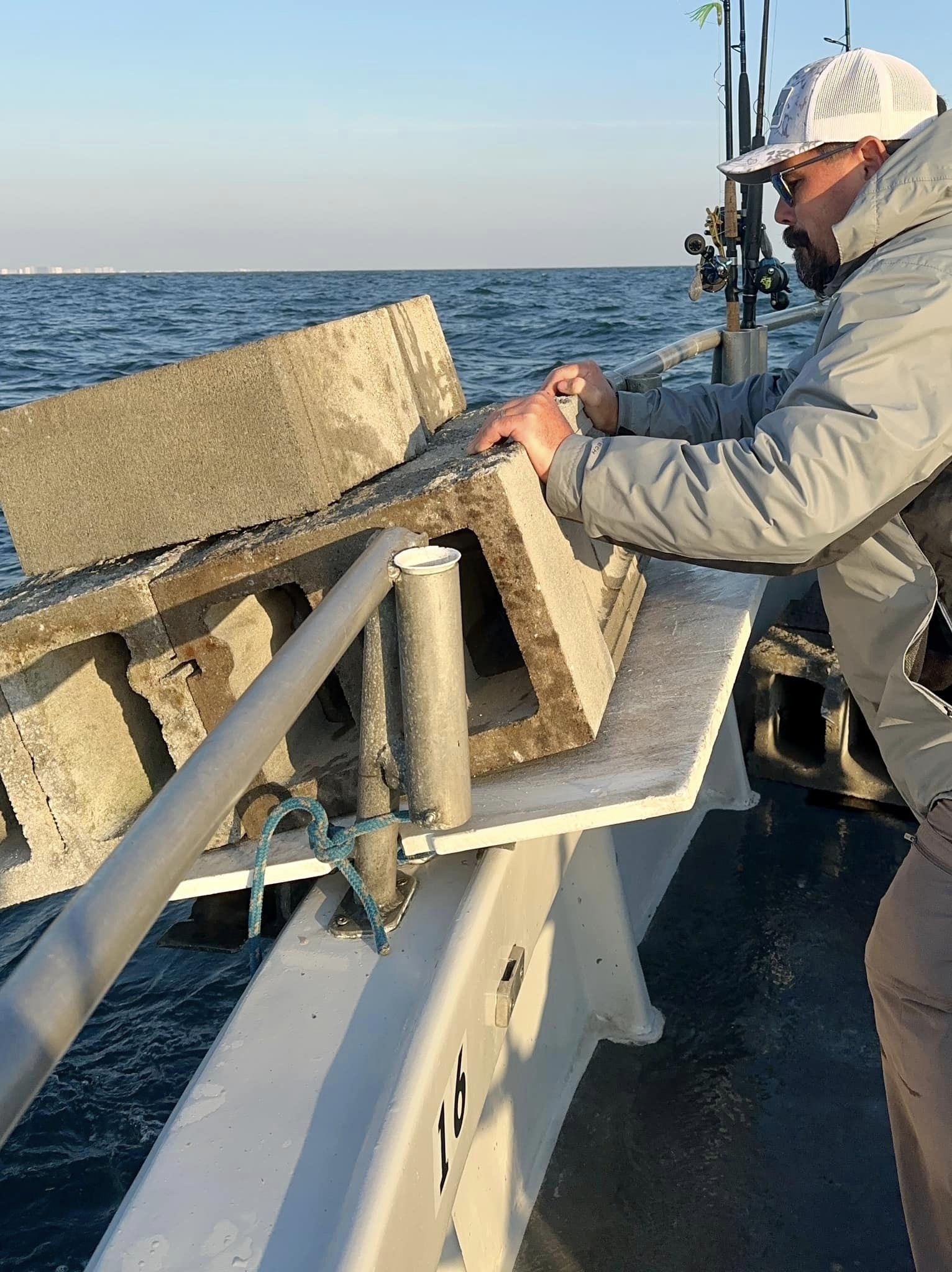 More opportunity will pop up for those; dern I’d sure like to start on the ‘dream reef’ this winter. Units made of 5 to 9 pieces of concrete pipe bundled together with old crane cable (aged out by OSHA but plenty good for reef building!) A good size hammer drill pops a hole right through the thickest of pipes. We’ll eventually deploy dozens of pipe units on hard bottom at the Bass Grounds (where natural reef was once abundant) and then overtop the whole area with a bargeload of cobble or block..