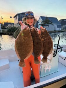 14-Year-old Mason Hetherington did the work today and put three nice keeper flounder in the box using Gulp.