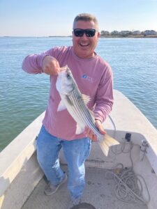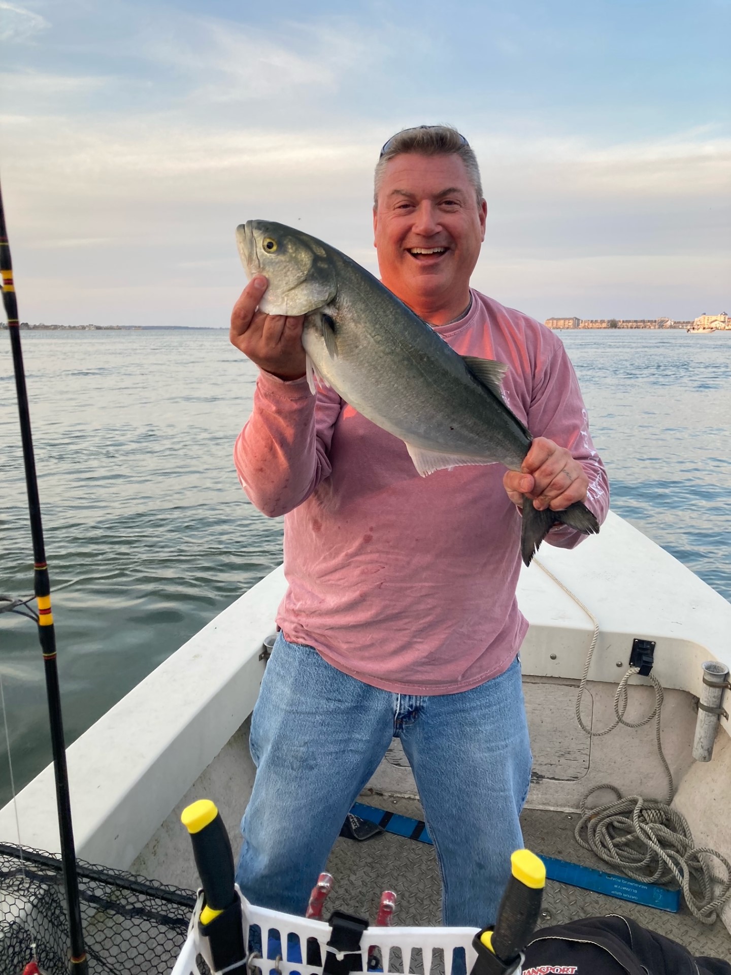 Big Bird Cropper had Steve out this morning and then Tom from the ACSA out this afternoon for some Roy Rigging and put some fish in the boat. The guys caught and released a bunch of rockfish and Tom lucked into a nice 25″ bluefish.