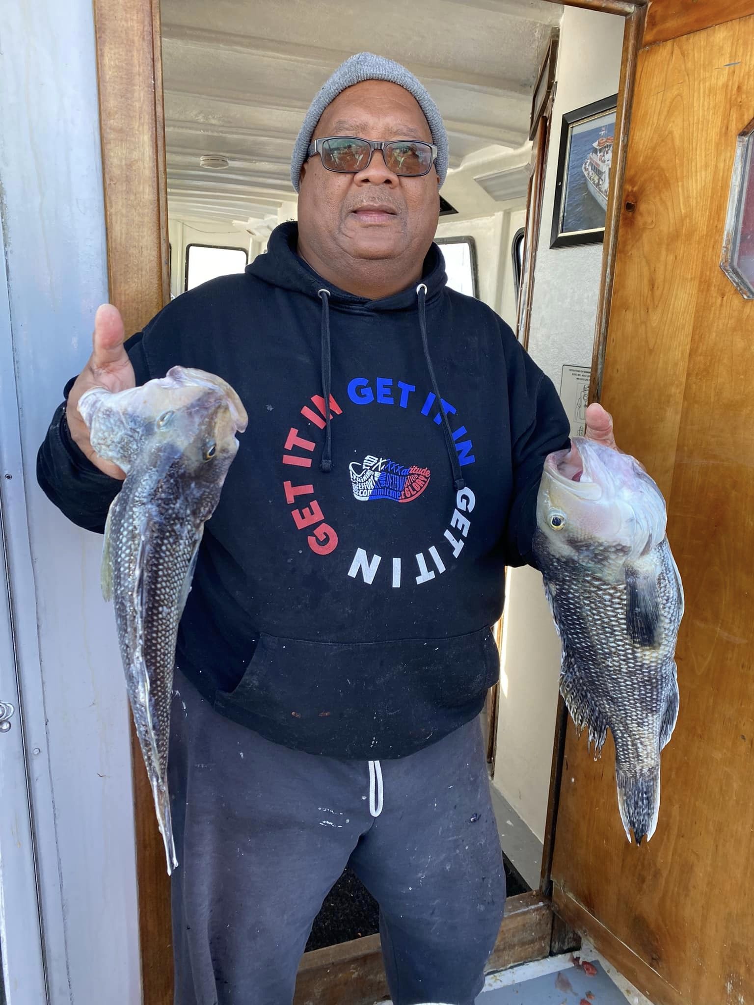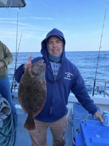 Captain Chris Mizurak of the Angler reported a different sea this morning with a wind out of the northeast at 15 or more making for a bumpy ride out. Things calmed down after a bit and the fish were chewing with some flounder and sea bass up to almost 4 pounds.