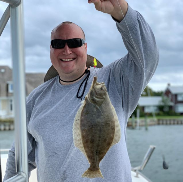Michael D. AKA “Dessertsnack” caught his first ever flounder while fishing on the Line Dancer while using our Fish in OC Dale Timmons’ Deadly Double in chartreuse.