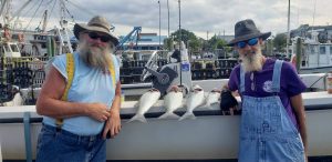 My man Big Bird Cropper would fish in a zombie apocalypse after a nuclear holocaust so a little wind just makes things interesting. Bird and Neighbor Dave used Roy Rigs at the route 50 bridge and put some nice sized bluefish in the boat despite the wind and dirty water.