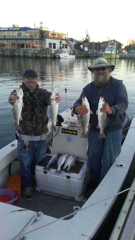 My buddy Big Bird Cropper was one of those boats out on the bay today and he had an awesome trip. Bird called this evening with a report of some really good fishing at the route 50 bridge and inside the south jetty with his buddy Joey Baker. The duo caught 20 throwback sized rockfish and had a double limit of speckled trout. The “specks” were a pleasant surprise and they caught some nice fish from 19 1/2″ to 23″ while fishing inside the south jetty. All of the fish are caught on Big Bird’s world famous “Roy Rig”.