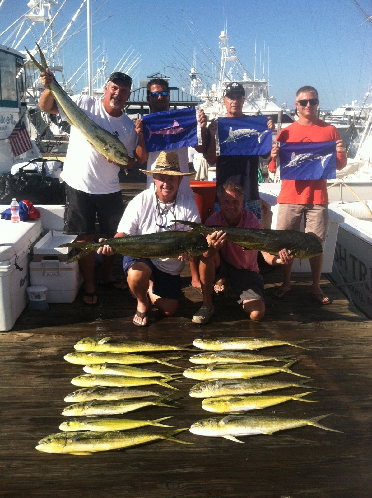 The offshore fishing was all about the dolphin today. There was a good bite in the Baltimore Canyon and there were fish below the Poor Man’s as well. Some of the fish are coming out of the blue, and if you can find a weed line or something floating out there, open the fish box cause it’s gonna be on. Dolphin fishing is that good right now. Captain Joe Drosey on Rhonda’s Osprey had some of the best of it today catching his crew 17 nice mahi. Rhonda’s Osprey also released two white marlin and got some awesome action shots while doing it.