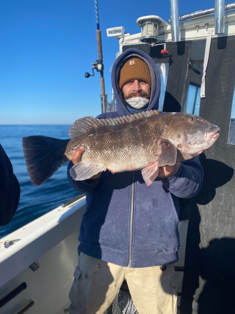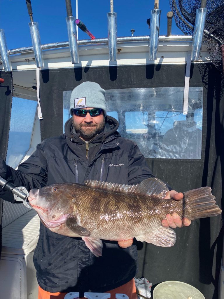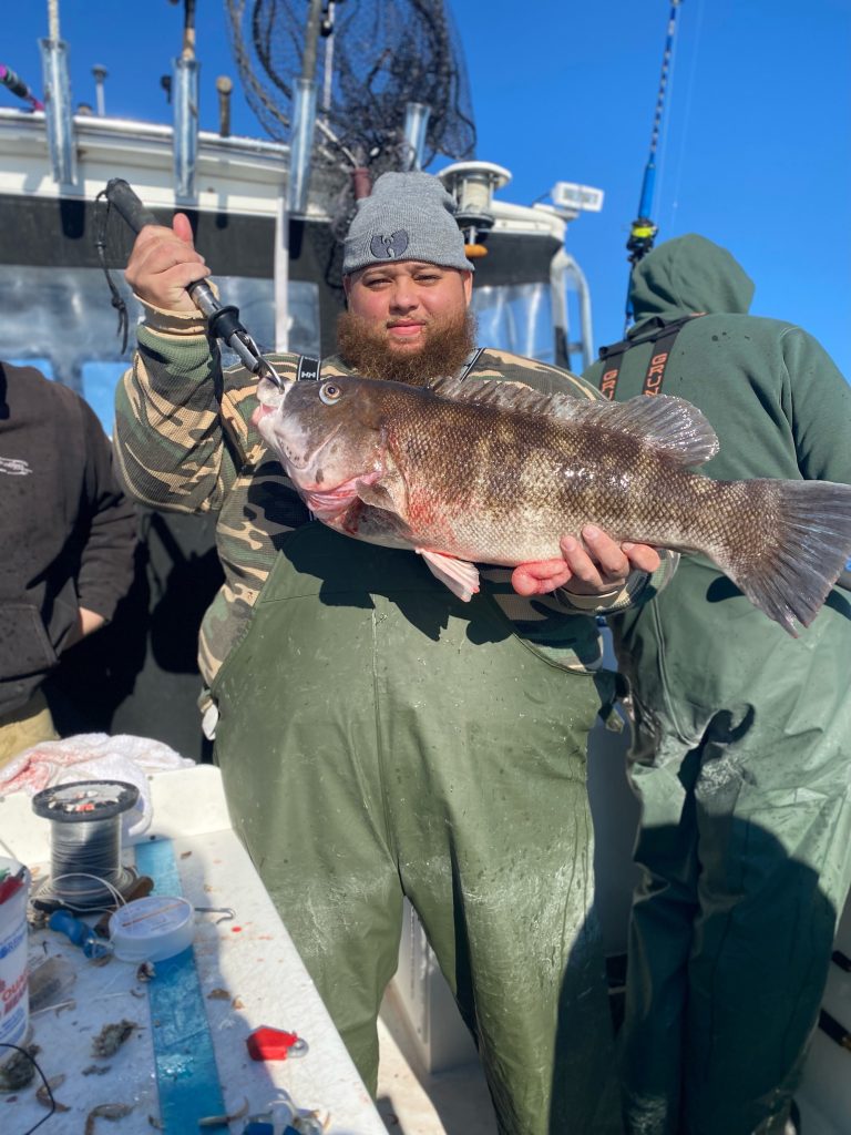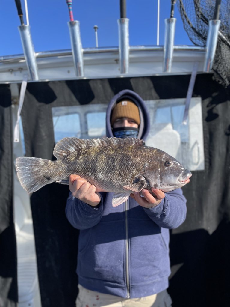 It was another good wind day today so some of the fleet was glad to get out and do some tautog fishing before this winter storm rolled in.  Captain Chase Eberle of Chasin’ Tides Charters had an awesome day of toggin’ with 10 fish in the double digits.