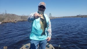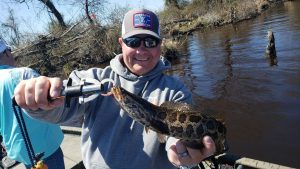 I had the pleasure of fishing with Sam Tudor today over on the Chicimicomico River near Vienna, MD for a new episode of Hooked on OC and we enjoyed the warm weather and some pretty decent fishing. Sam put me on my first ever snakehead and we also caught largemouth bass, white perch and a couple of catfish. Thanks Sam…and thanks to Dave Messick for the pics!