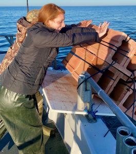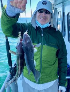 Guest reef builders Allison Nocera & Mario Eusi, both of Mardela Springs, MD. splashed a 20 reef-block unit. We pushed on a while and soon double anchored. This early bite wasn’t as kind as the weather, but some anglers nicked in a few.