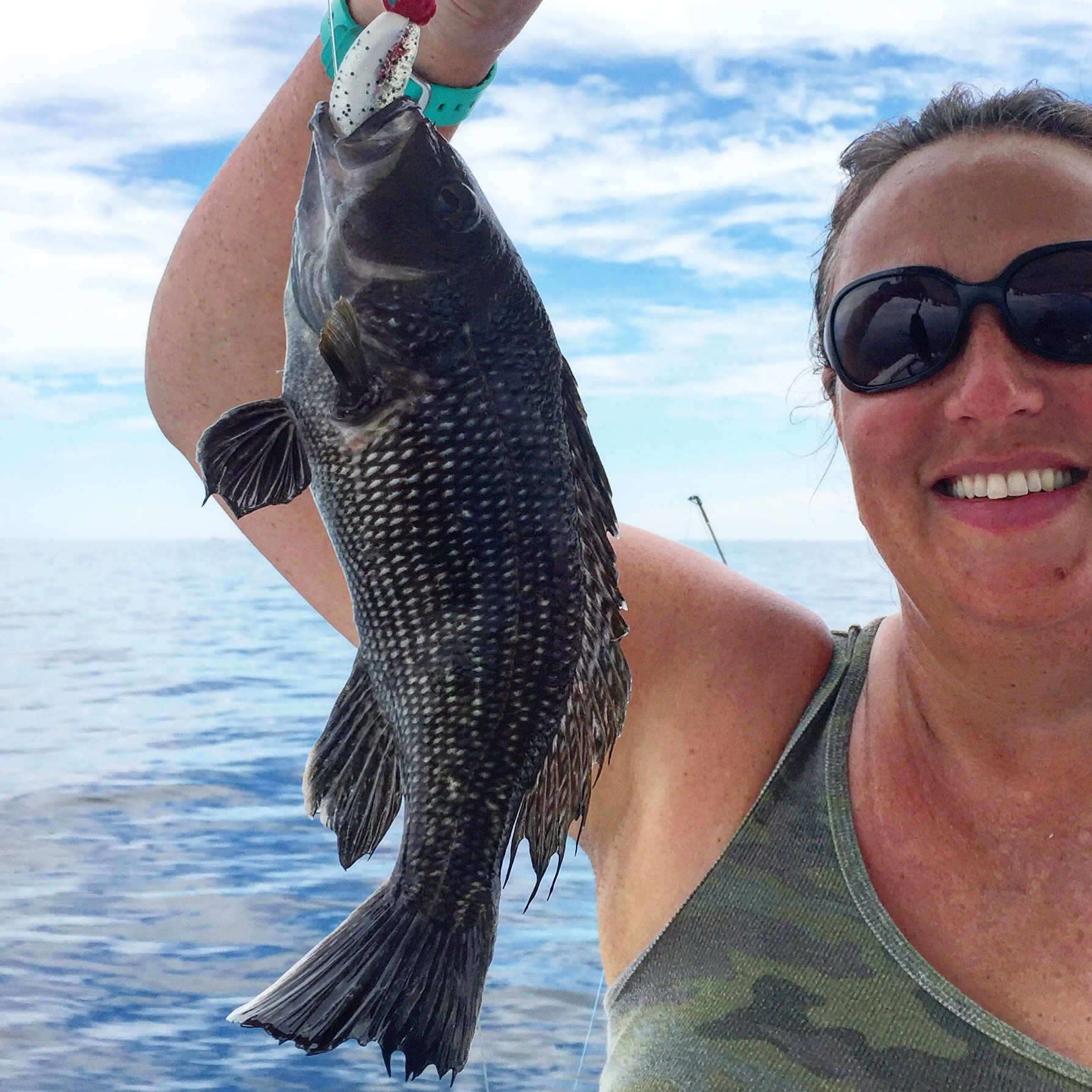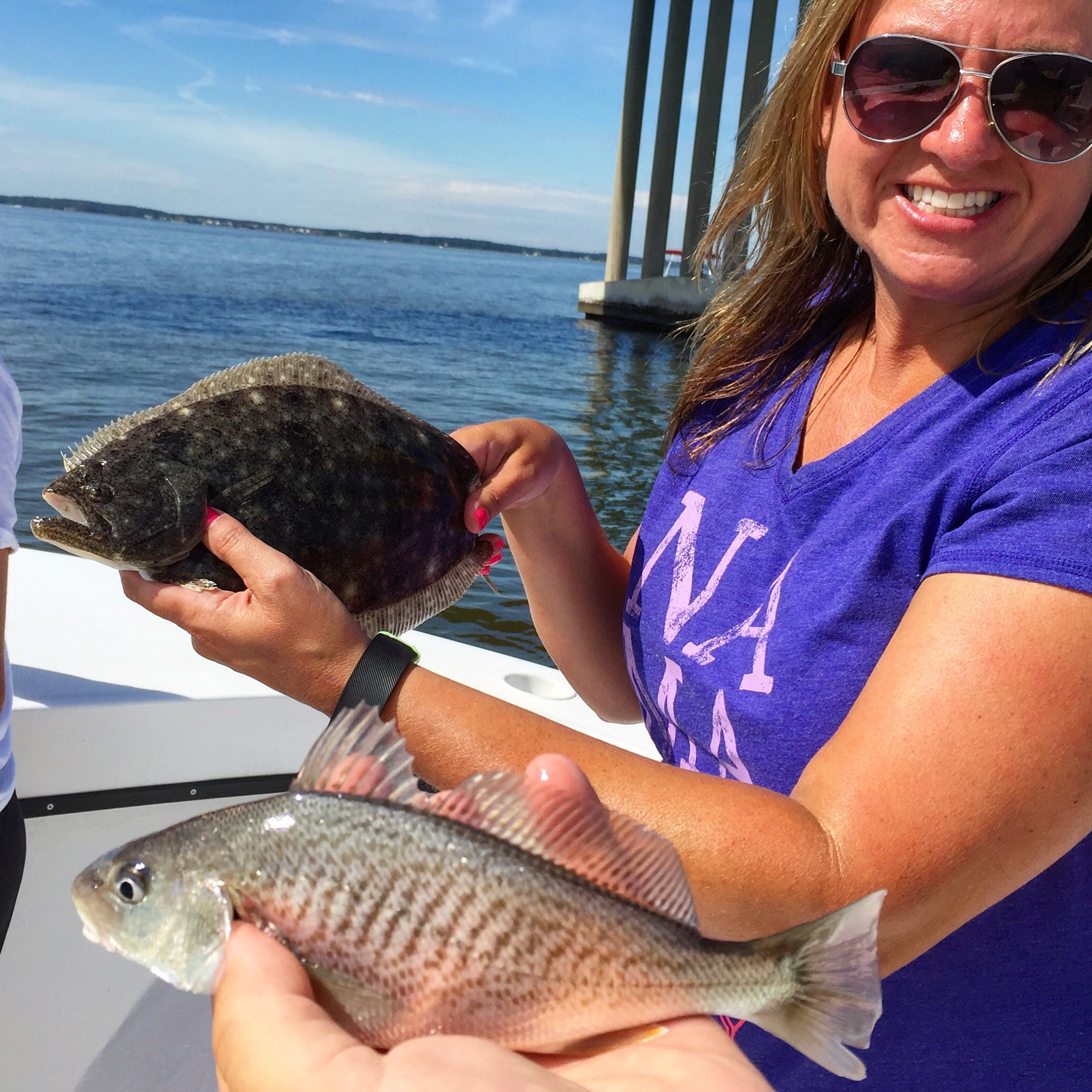 Captain Jeff Coats of Pitboss Fishing was out on the Bad Influence for two trips today. This morning it was a fun family trip where he put his anglers on croaker and flounder. This afternoon it was a trip to the ocean where he put his fiancé Karen on nice sea bass using Roy Rigs.