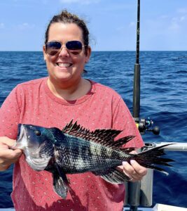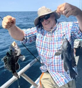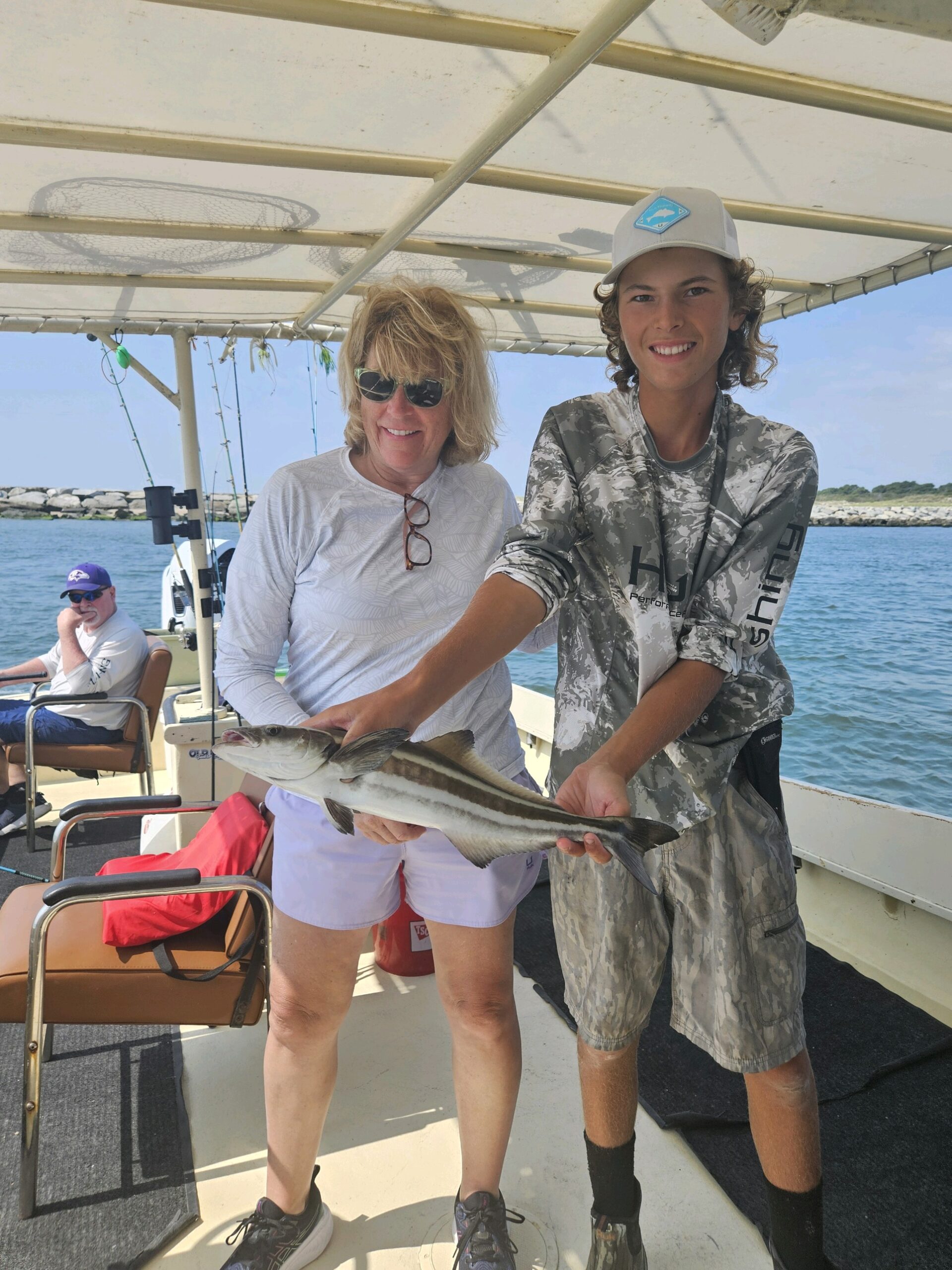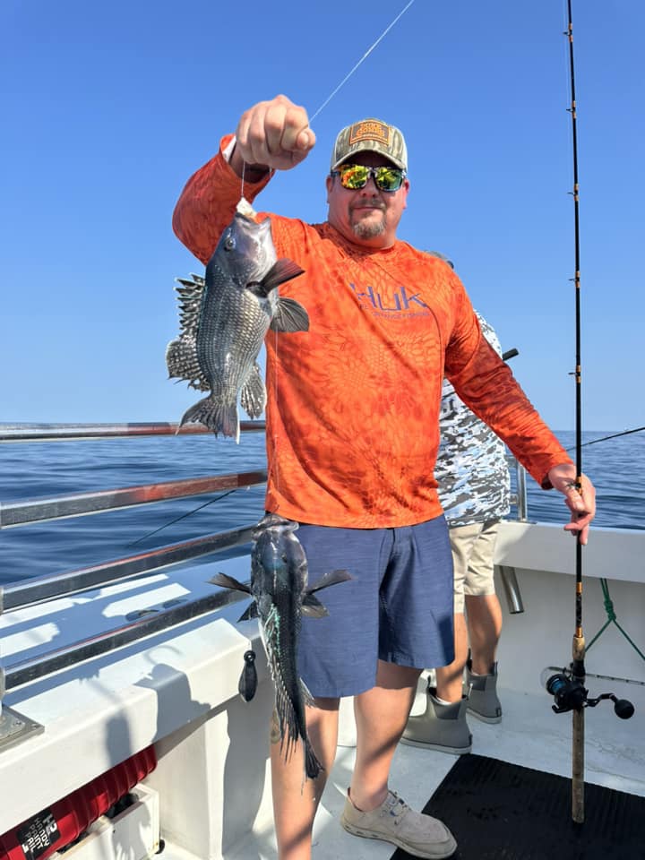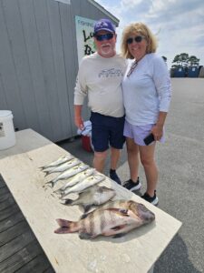 Captain Jason Mumford of Lucky Break Charters had a small cobia on board today in the OC Inlet where he also put his anglers on bluefish, a triggerfish and a nice sheepshead.
