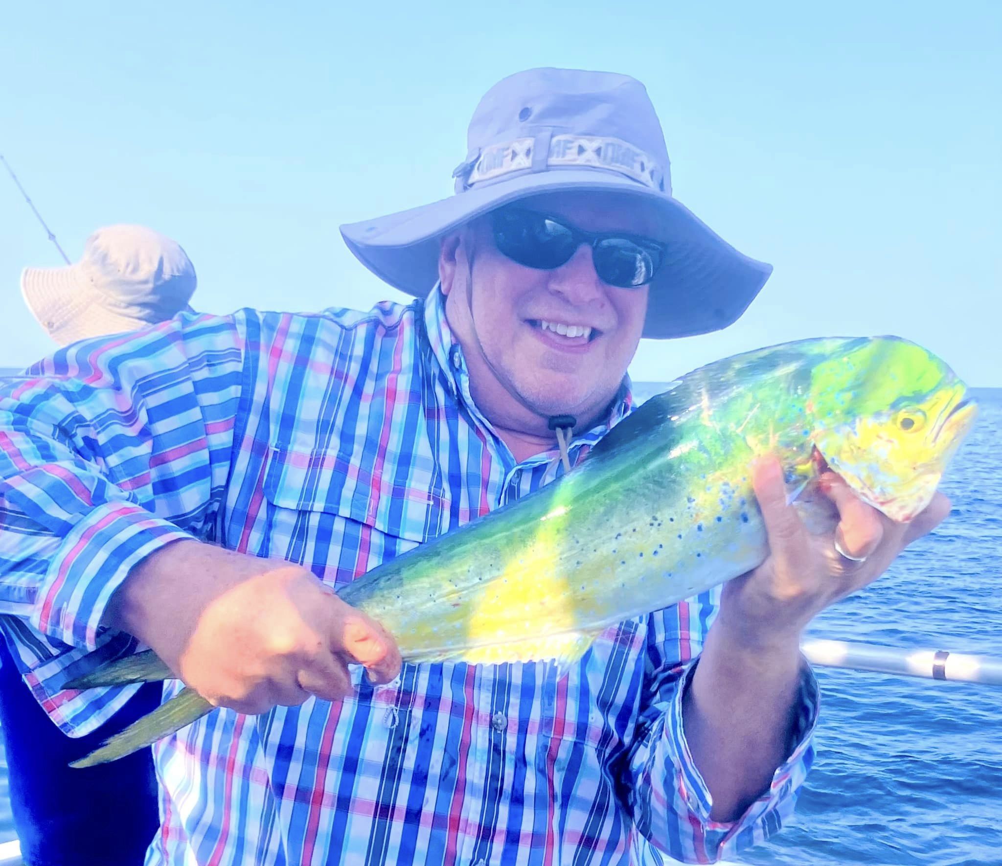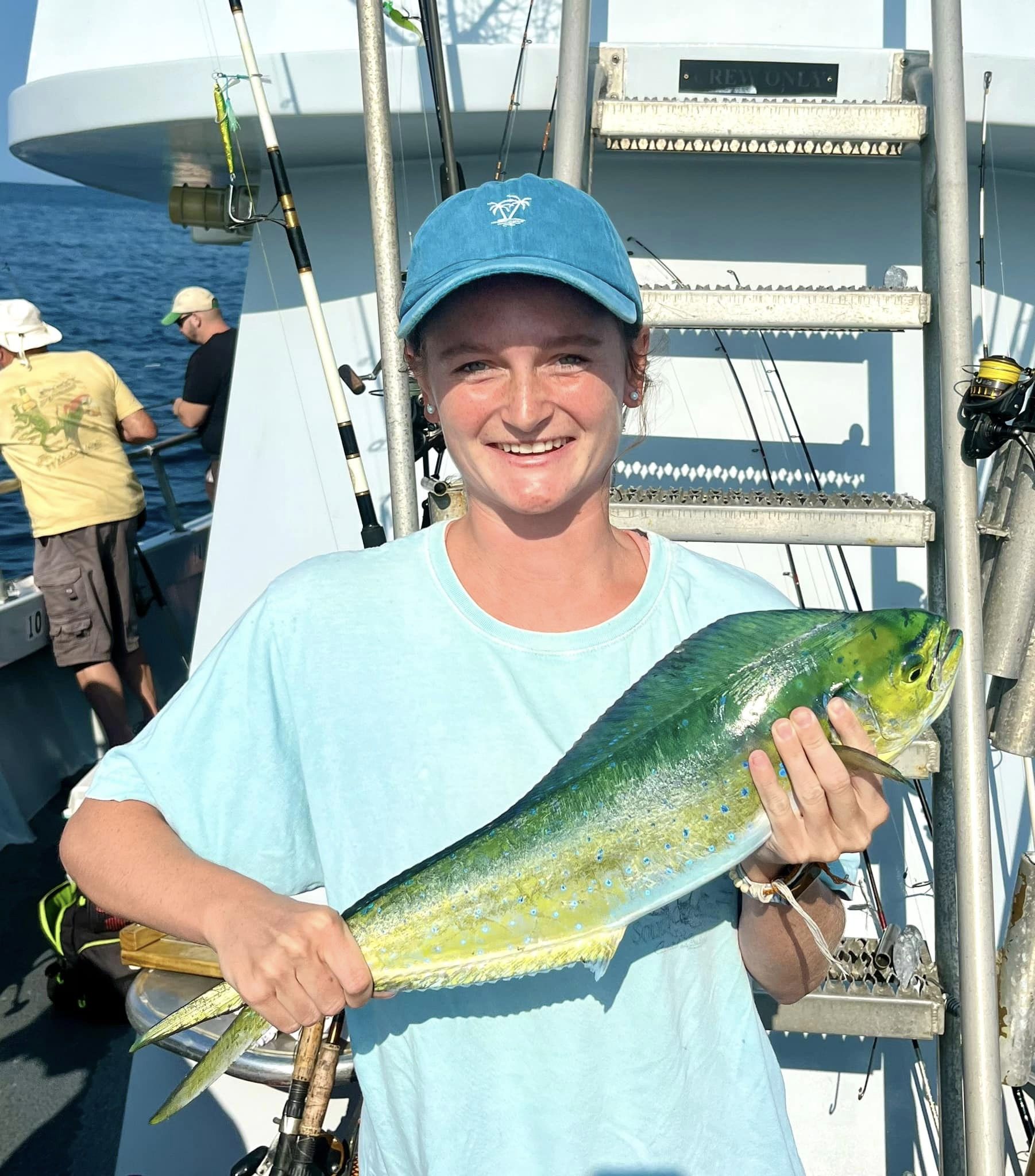 Our very first stop for mahi went hot immediately as Lexi used her reef builder’s karma to box the first of 3 green beauties off the drop.