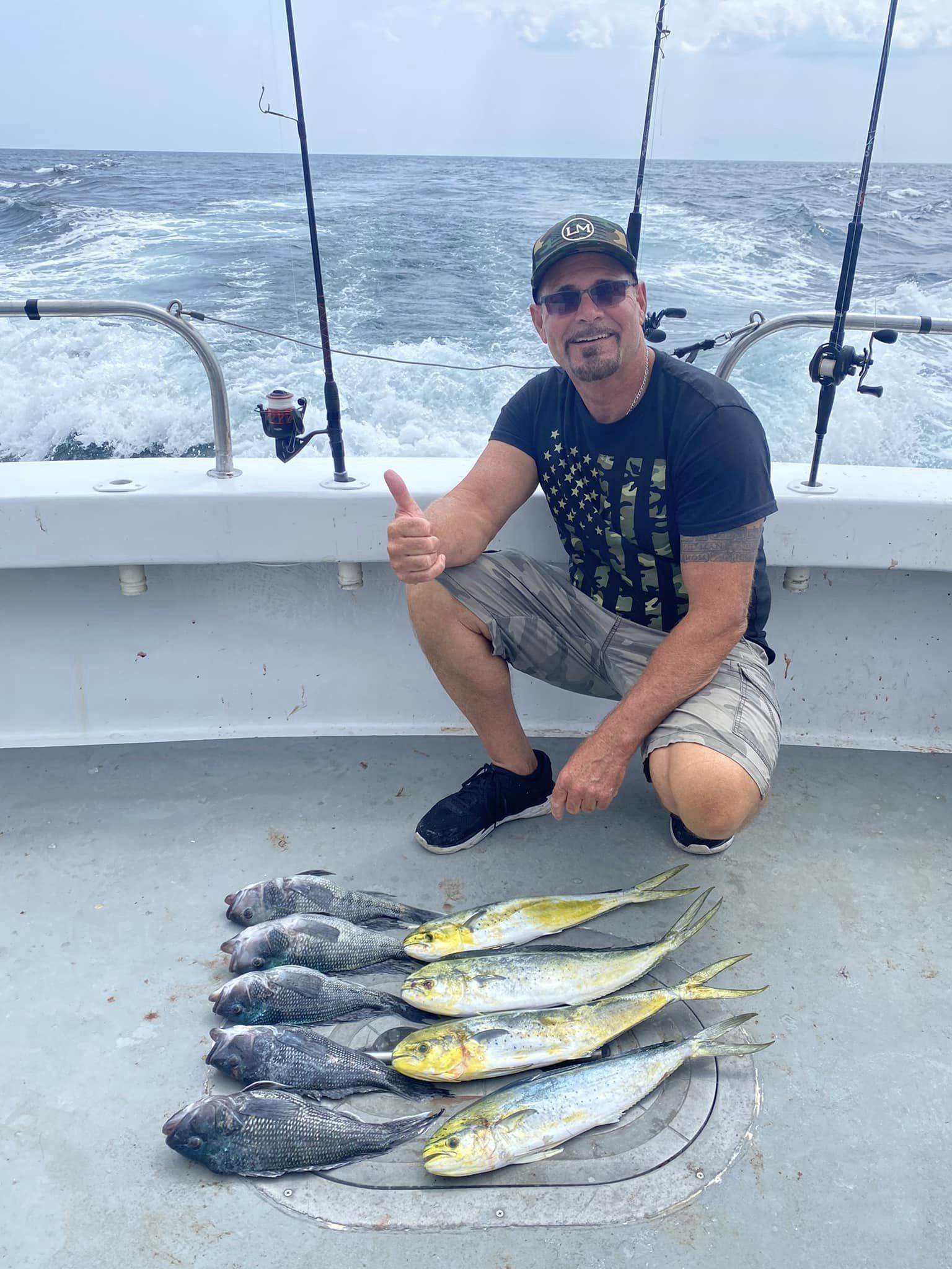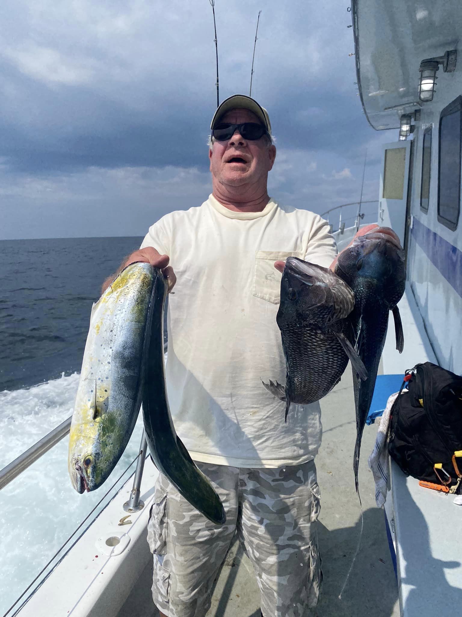 Captain Monty Hawkins had a few mahi today and some very nice sea bass.