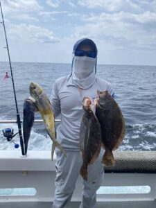 Anglers fishing on board Fish Bound with Captain Kane Bounds have had great trips recently with some big sea bass, some ling, some mahi and a few flounder.