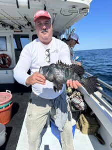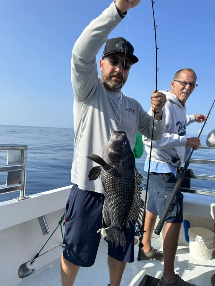 Captain Chris Mizurak of the Angler reported a decent bite today with plenty of sea bass, some mahi and one big monkfish.