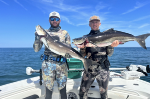 There were some cobia captured off of Ocean City today with some pretty nice fish in the mix. Nick Smallwood and crew speared a couple of real nice fish on the inshore shoals.