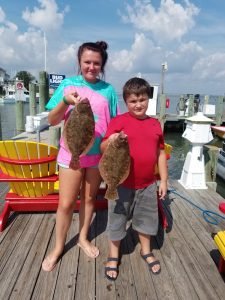 Siblings Madison and Jacob Muhles from Hampstead, MD had these keeper flounder today using shiners and squid while fishing with Captain Drew Zerbe and mate Serge Gardner on the Tortuga out of Bahia Marina. Madison’s fish was the largest at 19″ and just over 3 pounds.