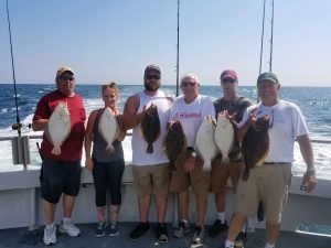 Captain Chase Eberle of Chasin’ Tides Charters had some great action this morning with flounder and rockfish. The crew released 15 short flounder and had fun catching and releasing over 30 rockfish.