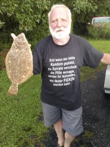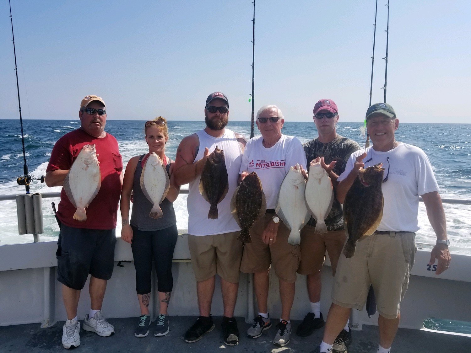 Captain Monty Hawkins of the Morning Star reported beautiful sea conditions today, but tough going for flounder with no current, but he was able to scratch out a nice catch. Greg Hellman of Phoenix, MD had his limit by 10:30 – a feat no one else would match despite numerous clients with 3 keepers. Dan Shive of Drifting, PA had today’s pool winner at 21.25 inches. Also pictured are Jordan & Amelia Hendricks of Rockton, PA – Ed Skripeck & Roy Hurd both of Moshannon, PA.