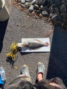 Vincent Fick was rocking the Crocs when he caught this 18″ keeper flounder fishing from Homer Gudelsky Park in West Ocean City.