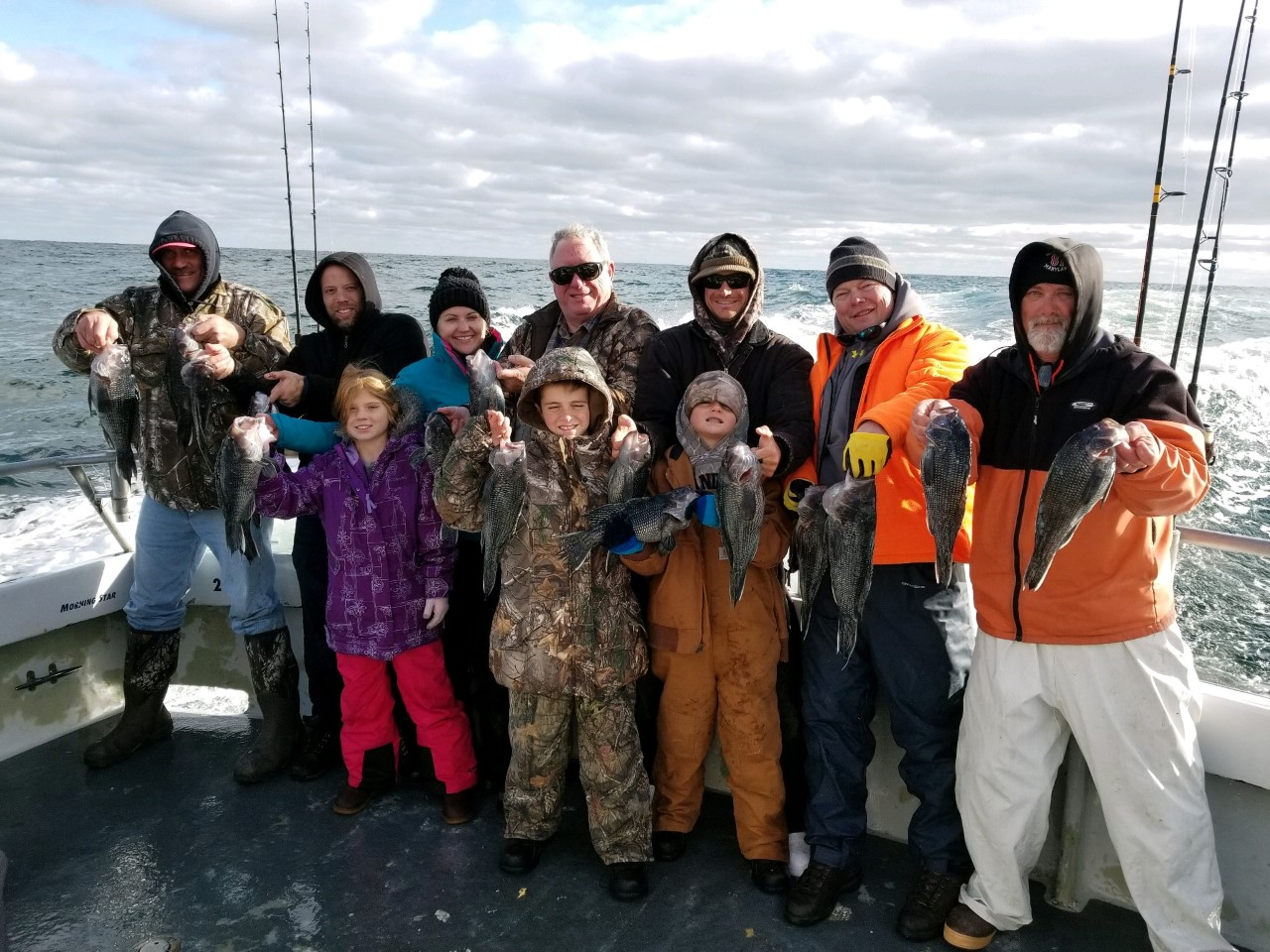 While some of us were preparing to go into the woods tomorrow for the start of Maryland firearms season for whitetail deer and others were stampeding to get their 87″ TV for $95 Captain Monty Hawkins of the Morning Star was busy having a fine catch of sea bass on the ocean today.