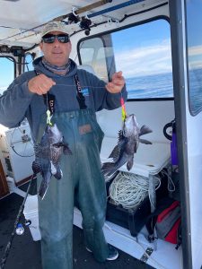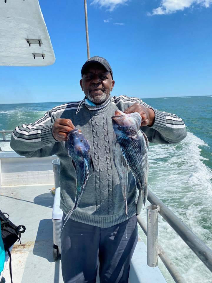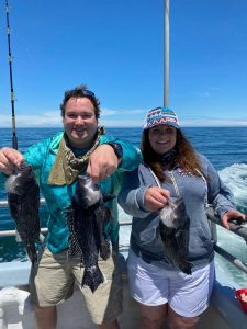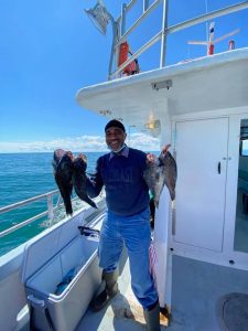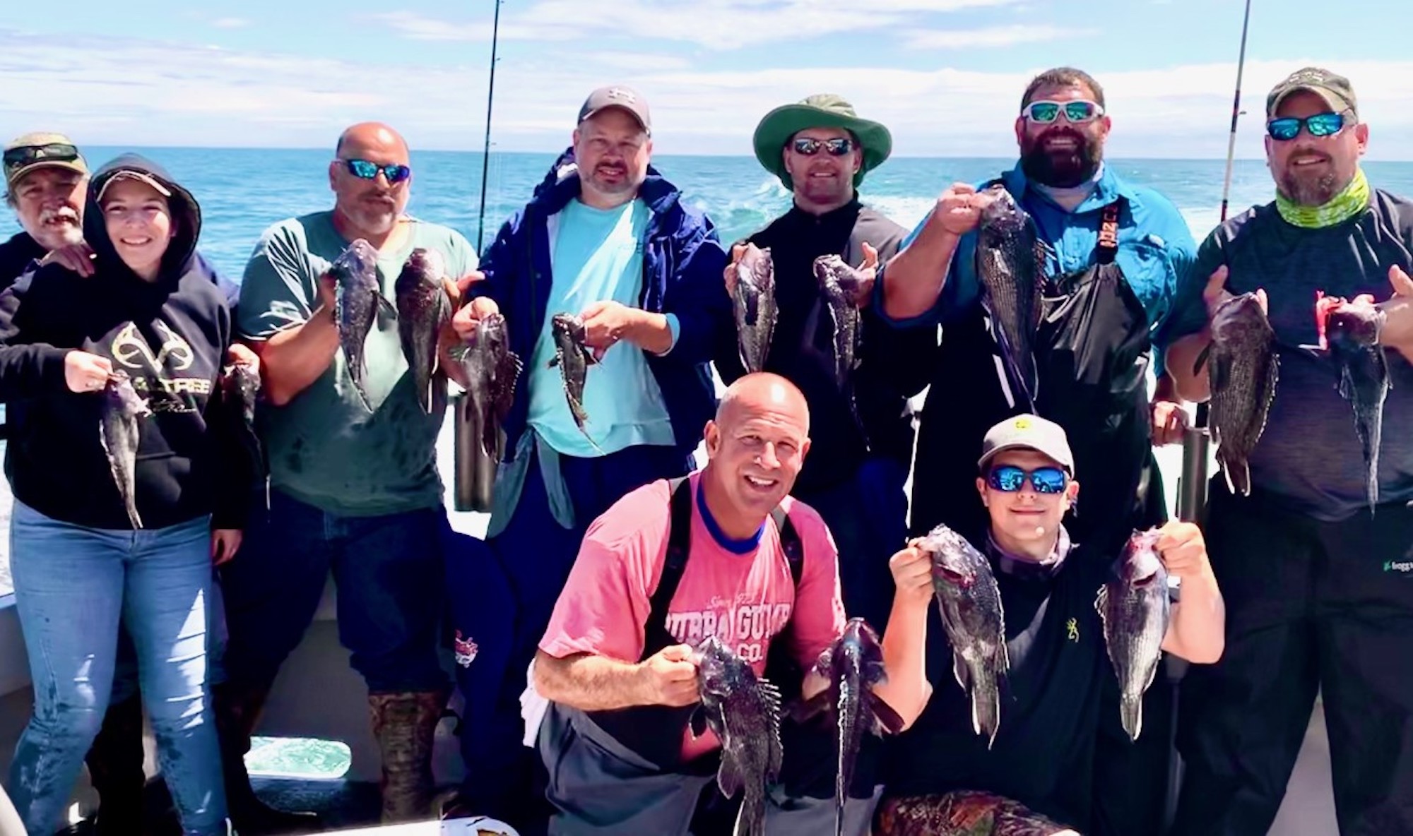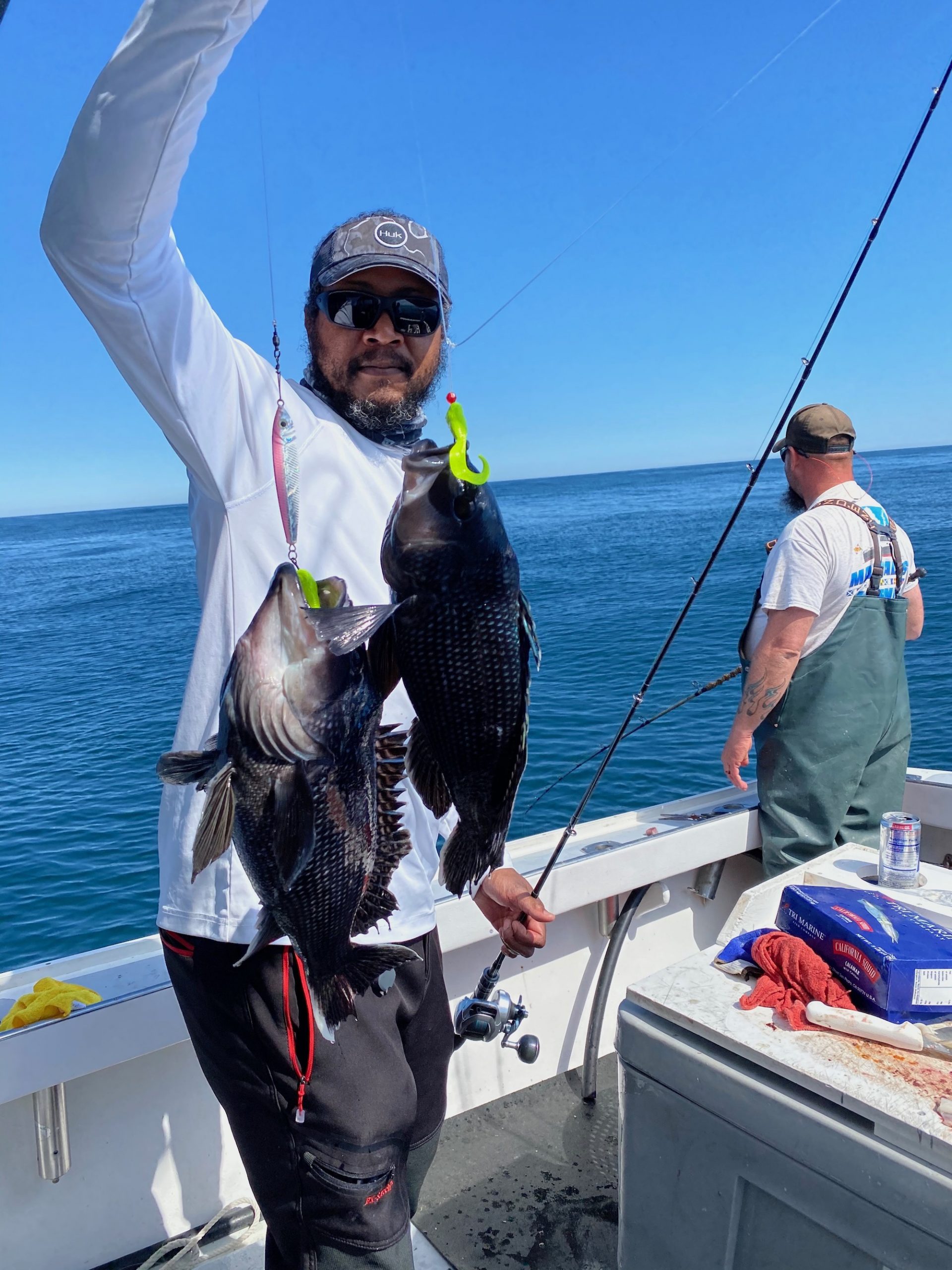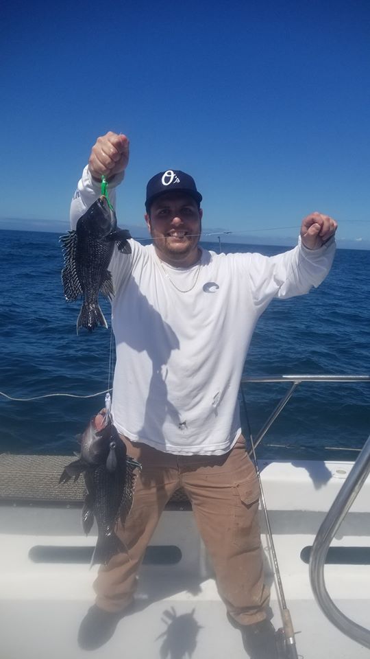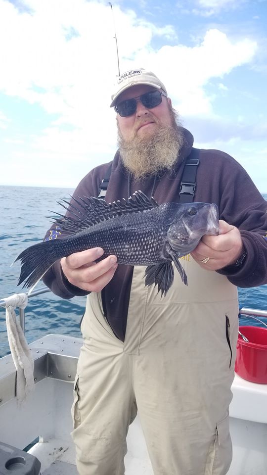 Black sea bass fishing was on fire today with calm seas and a terrific bite for all boats involved. Captain Kane Bounds reported that his Fish Bound had limits of BIG sea bass on both morning and afternoon trips.