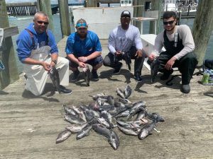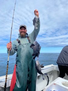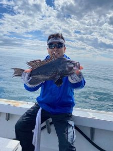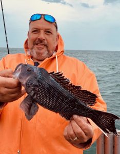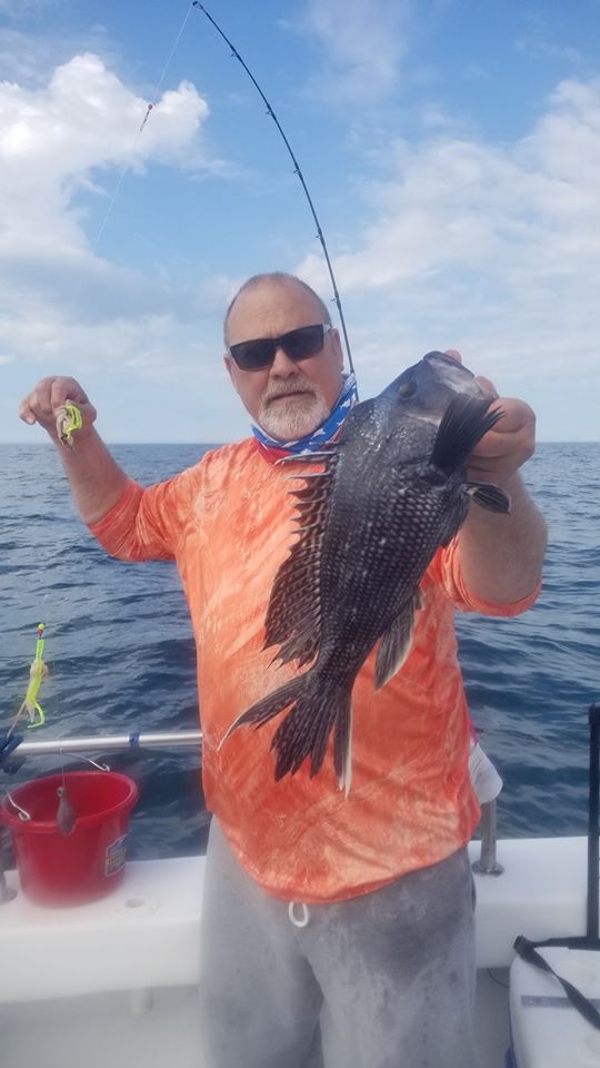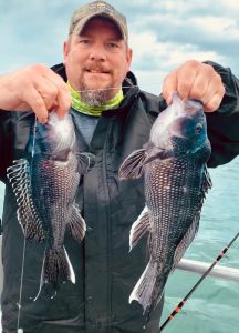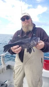 Captain Chase Eberle of Chasin’ Tides Charters reported an awesome bite for sea bass too and ended the day just shy of a four man limit with Cade Seely.