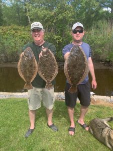Captain Lance Biesecker and Josh Rosenberger caught five throwback flounder and these three keepers up to 20 1/2″ in the Thorofare on the Line Dancer.
