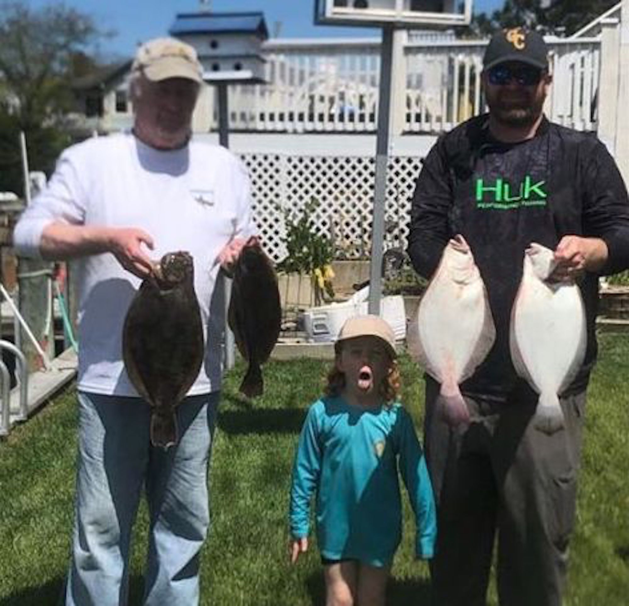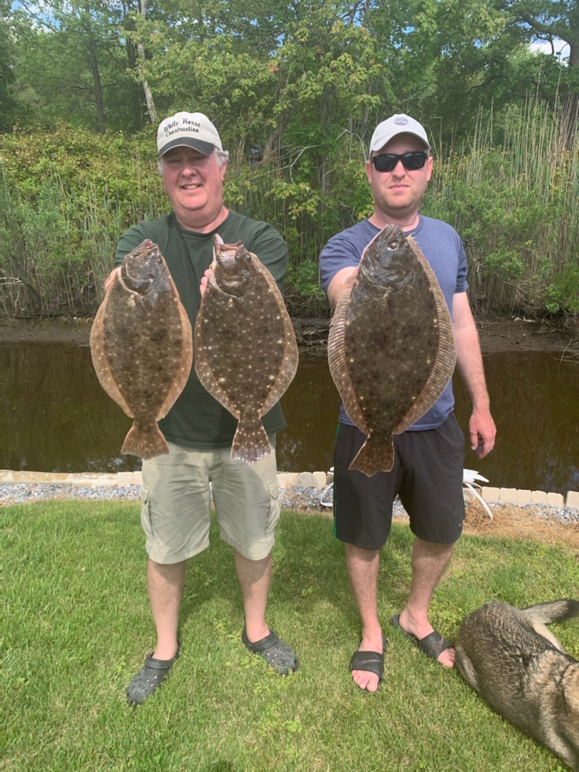 Francis, Francis and Frances Lanigan caught four keeper flounder today that measured 16.75″, 19″, 19″ and 19″ while social fishtancing.