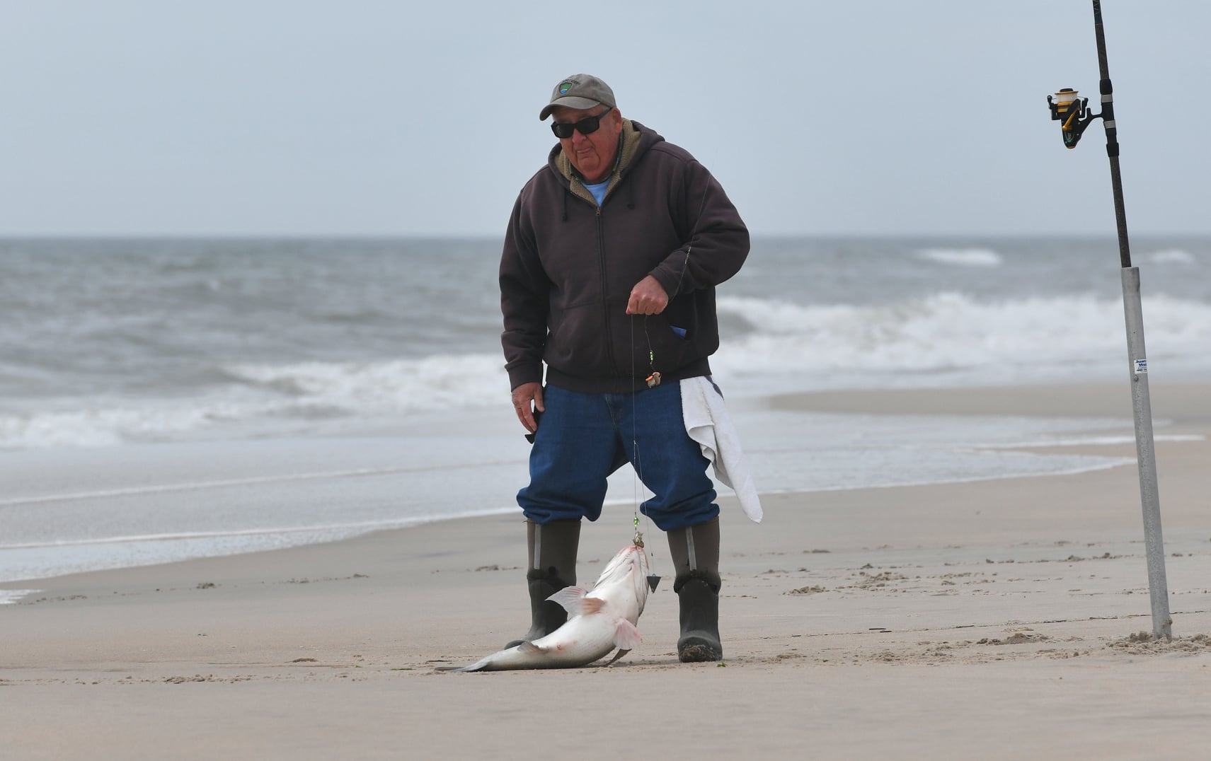 Before the rain and wind started this afternoon Assateague Island surf fisherman Allen Sklar was out looking for the first black drum of the season and was lucky, and good enough to find it. Allen was fishing with Bill Powell who caught the 2nd black drum of the season (pictured below) so both guys got on the board first and had some great fish for dinner. Congratulations to Allen and Bill on the catches!